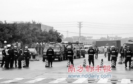 2009年12月30日凌晨5时许,东坑镇中兴大道附近的居民被急促的警笛声吵醒。14辆满载特警的装甲车整齐地排在一起,两三辆载有民警的大巴徐徐驶进封锁线内,整个场面就跟香港警匪电影一样。