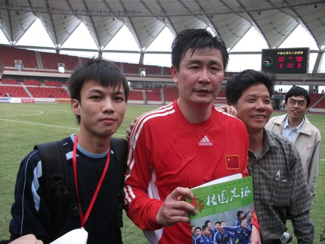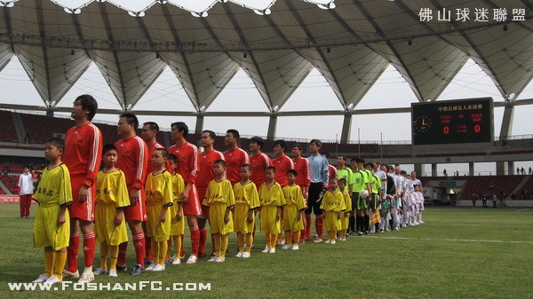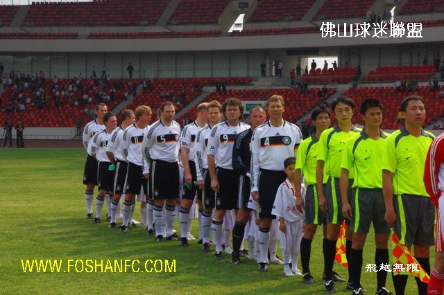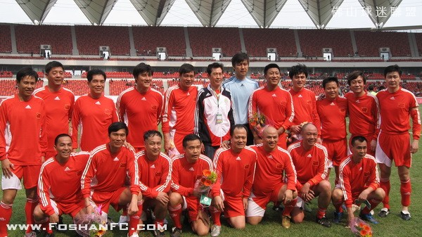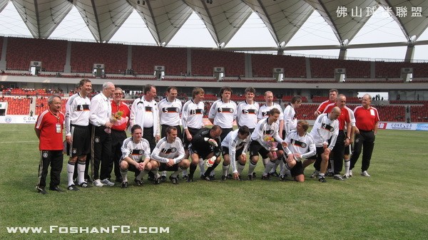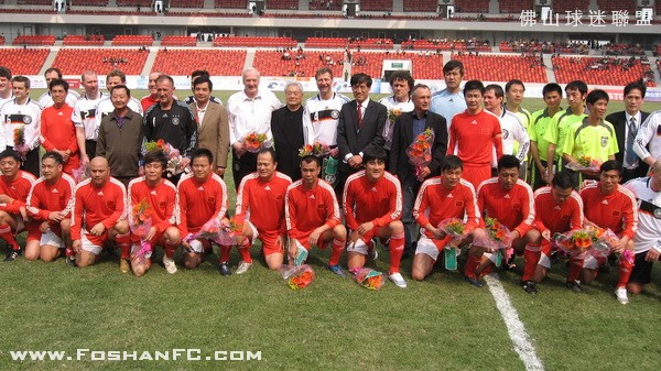 昨天下午S佛山体育场举行了一场别开生面的足球赛――中德名人赛。参赛双方都是业已发福的中德足坛昔日明星级球员,原国家队主教练戚务生和与中国足坛情缘匪浅的德国名帅克劳琛分别担任了双方的主帅。经过80分钟激战,最终中国队2比3不敌由世界杯冠军队成员布赫瓦尔德等组成的德国队。但郝海东、范志毅等风头不减,分别以漂亮的进球或“助攻”展现了他们的绿茵情愫。   本次比赛由克劳琛牵线搭桥组织,他也毫不讳言选择广东作为举办地含有立足于此,进一步推进中德足球交流,参与当地青少年足球培养工作的用意。而略显遗憾的是,本来已经允诺参赛的著名球星马特乌斯,因在3月7日与海地国家队联手举行的为海地大地震募捐的慈善赛中意外受伤而无法前来,克劳琛只能在临赛前抱歉地允诺,一定会邀请他出席明年5月在上海举行的中德U17比赛等。当然,参赛的德国队员不乏星光熠熠者,比如曾在1990年世界杯决赛中成功冻结马拉多纳的布赫瓦尔德。而中国队昨天的首发阵容也颇让人感慨:除了就近参赛的一些广东足坛明星,后防中卫组合范志毅、张恩华,前锋组合郝海东、高峰,中场谢育新、姜峰,守门员江津等名字恍如昨日重现。