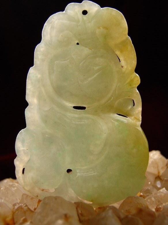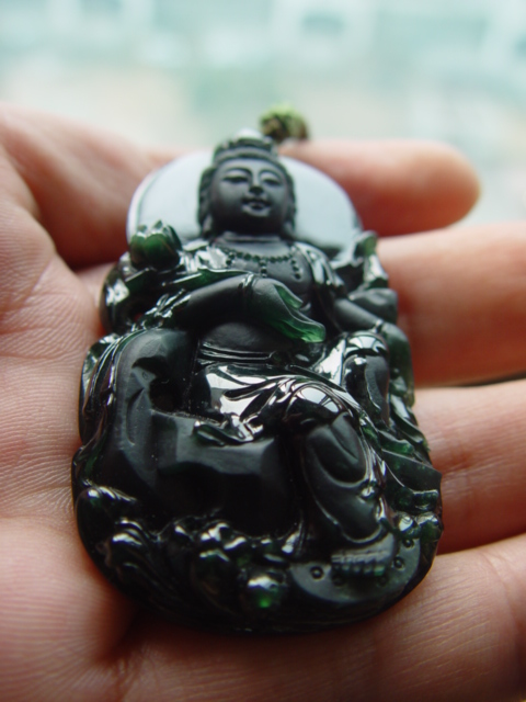 个人认为精品的墨翠,一定要表面如墨,透光照艳绿,而且结构不能松散,好的墨翠从雕工细腻就能看出来 ,好的墨翠要纯,就是不带一点灰的杂质