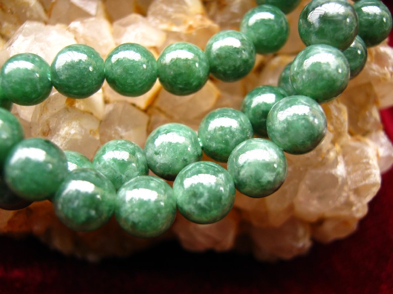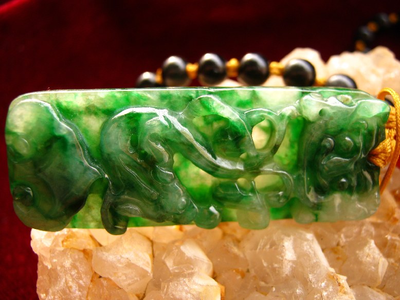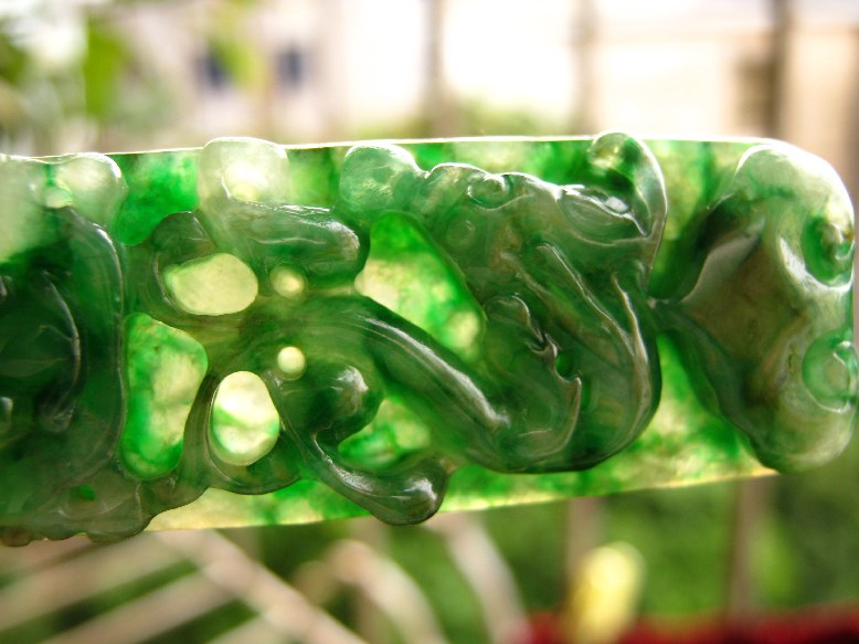 绿颜色是由于含有微量铬、铁元素所致。绿色是翡翠之宝,在决定其经济价值时占有很大的比重。