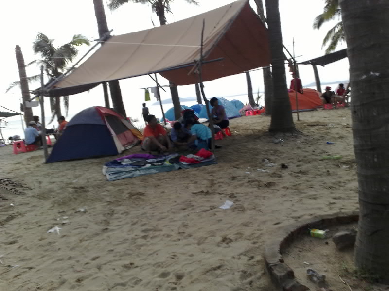 如果,您想体验难民的生活,您就跟0668驴行的一刀们去大树岛吧!在这里,您会体会到下车了找不到领队人站在太阳下爆晒的感觉,亲身体会到抢帐篷抢被等的乐趣,不过您要做好抢也没有的准备,还可体验拿着碗围着一锅粥象灾后一样饿着肚子等着分上一碗!两口井都被打干了,所以也别想着冲凉,需要什么记得自力更生别烦驴头,他也很烦… ---------记于大树岛沙滩上(详细回到可爱的茂名再记录)