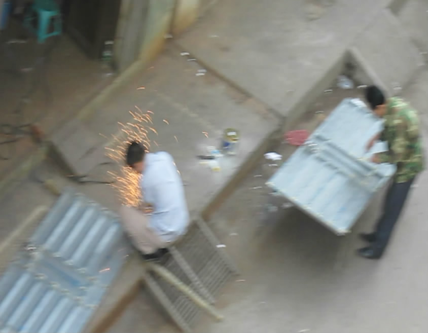 他用电焊锯铁所发出的噪音严重扰民,声贝100多以上!