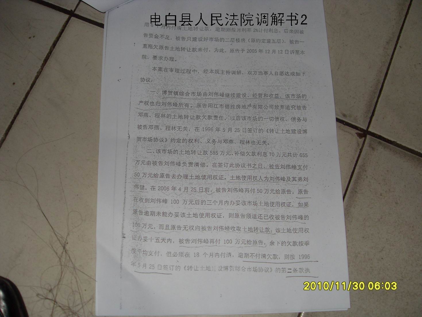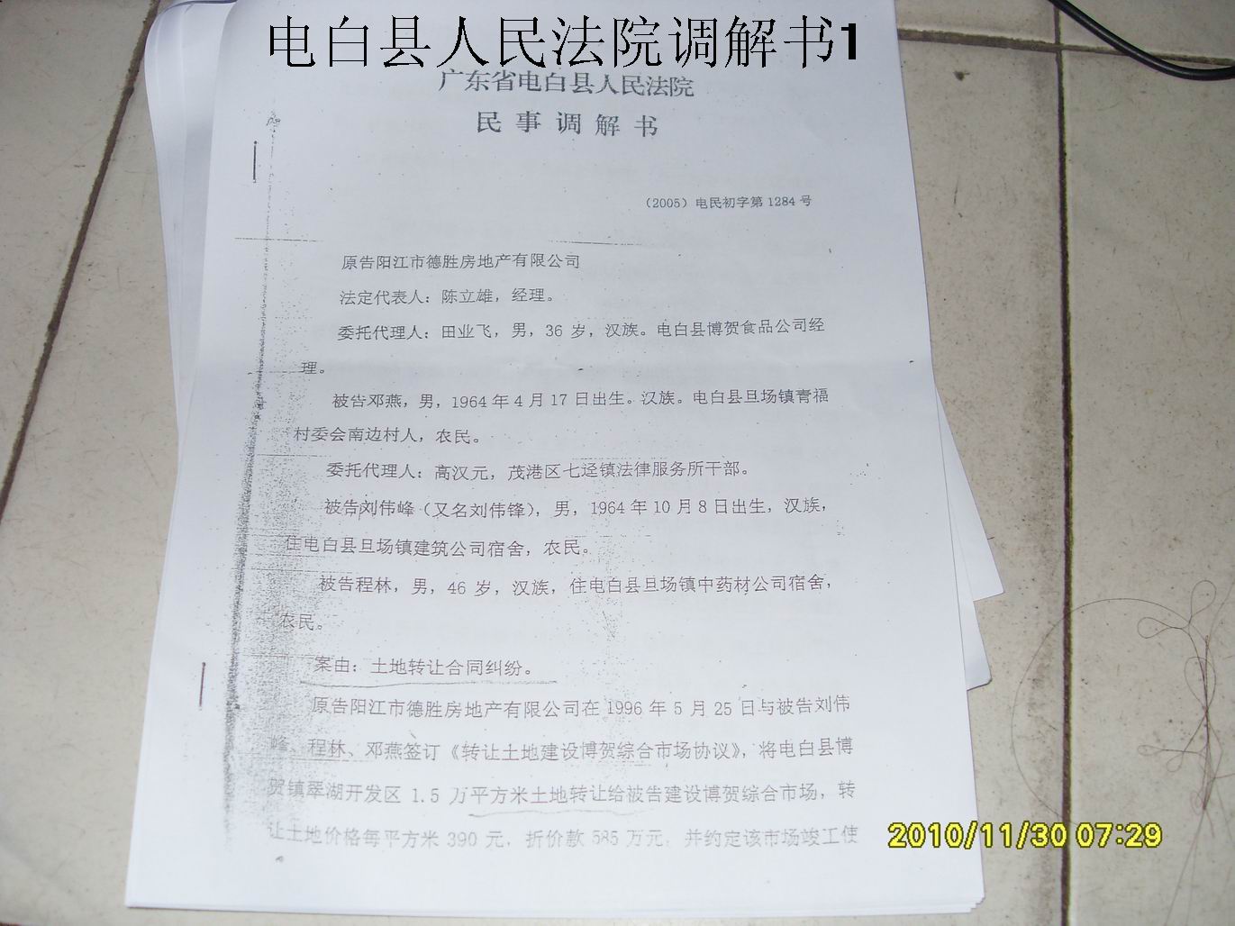 2005年随着国家查处一批土地违法案件,身为电白县人民法院院长的黄兴南为了掩盖茂名市常务副市长杨光亮罪行,使尽阴谋诡计,利用金钱收买串通茂名市中级人民法院许彦和指使电白县人民法院谢劝(杨光亮表弟),通过虚假诉讼,取得二级法院的民事调解书各一份,以合法的形式掩盖非法的目的,使没有土地使用权和没有债权关系的田业海成为270亩集体土地的所有权人。