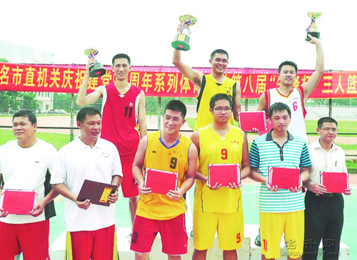 昨天上午,经过三天的激烈角逐,茂名市直机关第八届“先锋杯”三人篮球赛在市体育中心落下帷幕。市人力资源和社会保障局、市地税局、市城管局分别夺得三人篮球赛前三名。