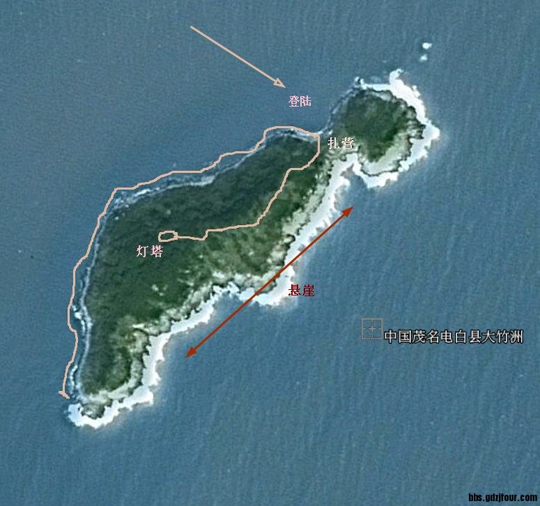 大竹洲岛位于电白电城镇爵山南面海面,本地人叫南士岛,该岛属无人岛,风景优美,有山,有树,有海滩,海水很清和放鸡岛有得比的。