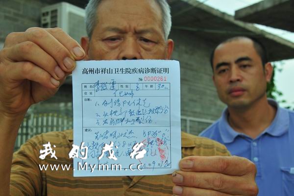10点45分,祥山卫生院的救护车赶到,生命垂危的李某被送到卫生院抢救,院方曾出具“病情危急”的诊断证明。随后,李某被转到化州市人民医院抢救,目前仍在该院接受治疗。