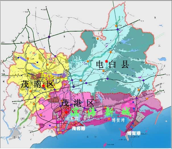 现提到了茂名滨海新区的建设问题都是捕风捉影,L形发展规划,爪子伸得太长了,想把电城一带并入,茂名滨海新区是经济试验区,不是政治辖区。很多人幻想天开,以为电白分裂,提前打家产,分地界,沙琅好寂寞,看了画了三个圈眼热,,想划四个圈,