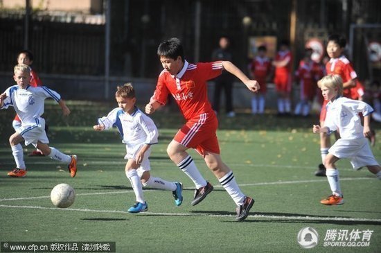 2011年10月24日,北京,地坛小学与俄罗斯伊尔库茨克州少年迪纳摩足球队进行一场足球友谊联赛。