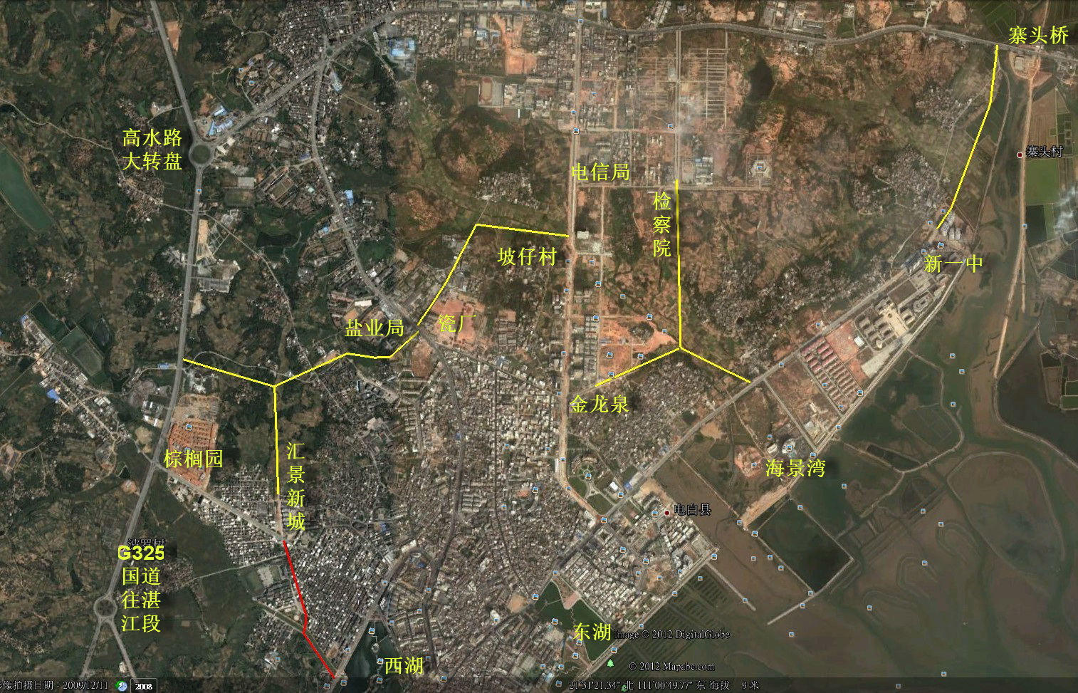 电白交通混乱,尽快开通寨头―新一中、金龙泉―海景湾路口