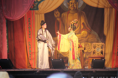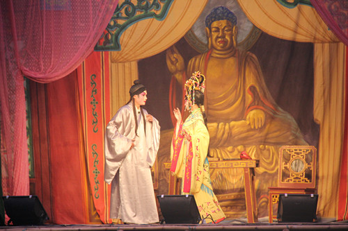每年都花大钱请粤居团回来表演,当我问及一些六七十岁的老年人时,他们才给我说明原由。原来做二月廿二的戏是叫“谢恩戏”,也叫“求雨戏”,为的是感谢灵尊二王神。有这样的传说,在民国时期,马踏镇雨水少,农作物难以生长。(在那个时代不像现在,农作物的收入直接解决着一个人的温饱及生存)。当时,马踏全镇人民聚集到一起,在神庙拜神,并向灵尊二王神许愿,希望降雨,让农作物生长。如果显灵了,则每年请粤居团来表演答谢灵尊二王神。自此之后,马踏镇就风调雨顺,农作物开始大丰收。这也就是马踏每年二月廿二日开始做古装粤剧大戏的由来。