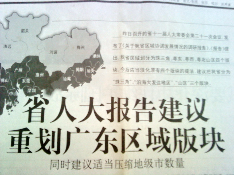 今年3月,广东省城镇化发展“十二五”规划提出,“十二五”期间,广东全省城镇化率每年提高0.8个百分点左右,2015年达70%,其中珠三角要打造成为更具综合竞争力的世界级城市群。