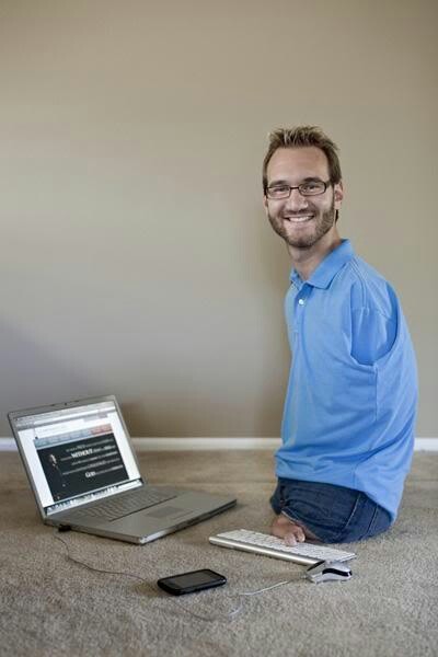 天生没有四肢的尼克、胡哲,曾在澳洲、美国、加拿大、中国(内地、香港、台湾)新加坡、南非、哥伦比亚、印度等25个国家和地区分享自己的经历。虽然他没有拥有健全的四肢,但他认为拥有一个健全的心灵、来自信仰的力量比什么都更重要。