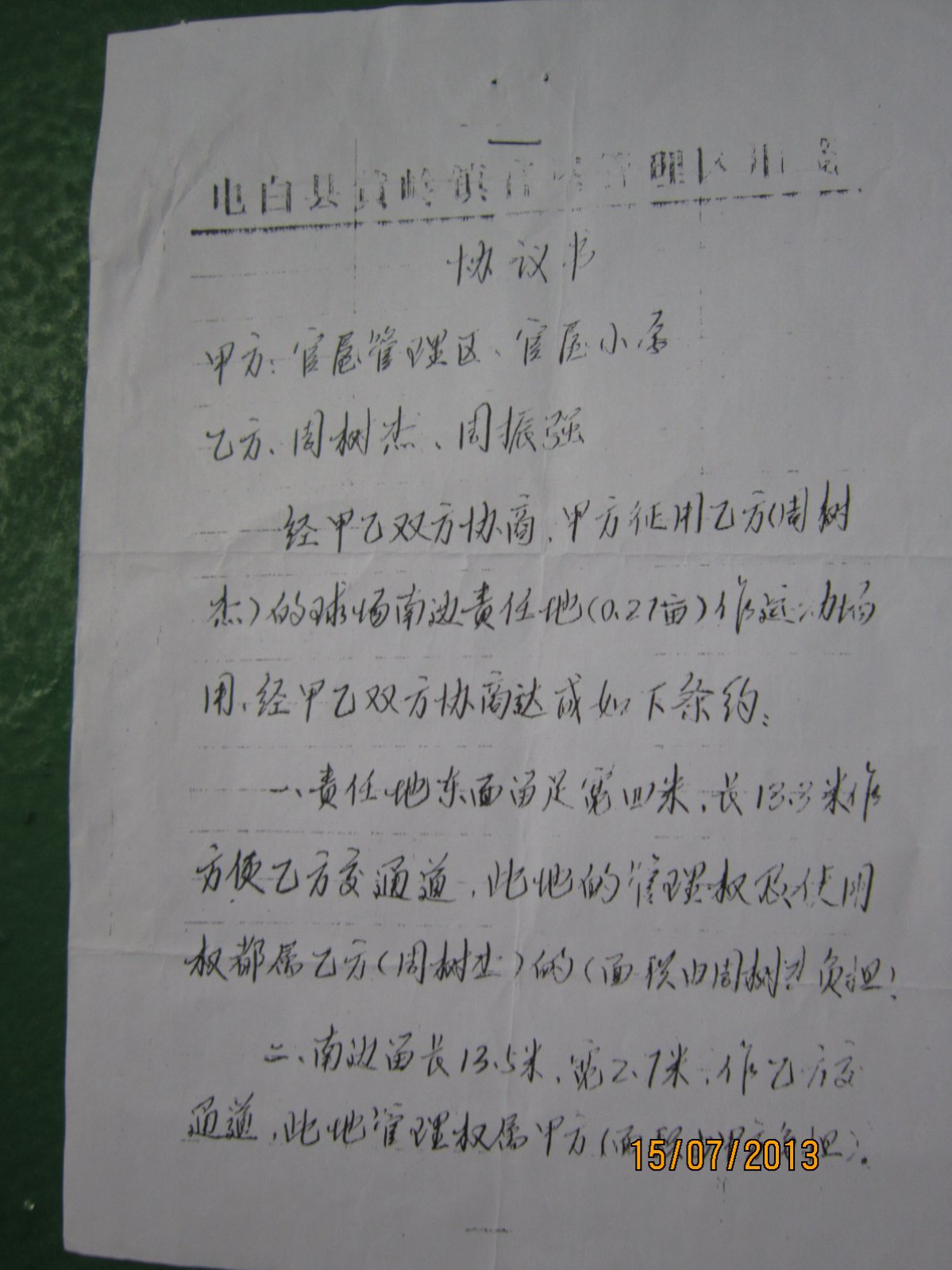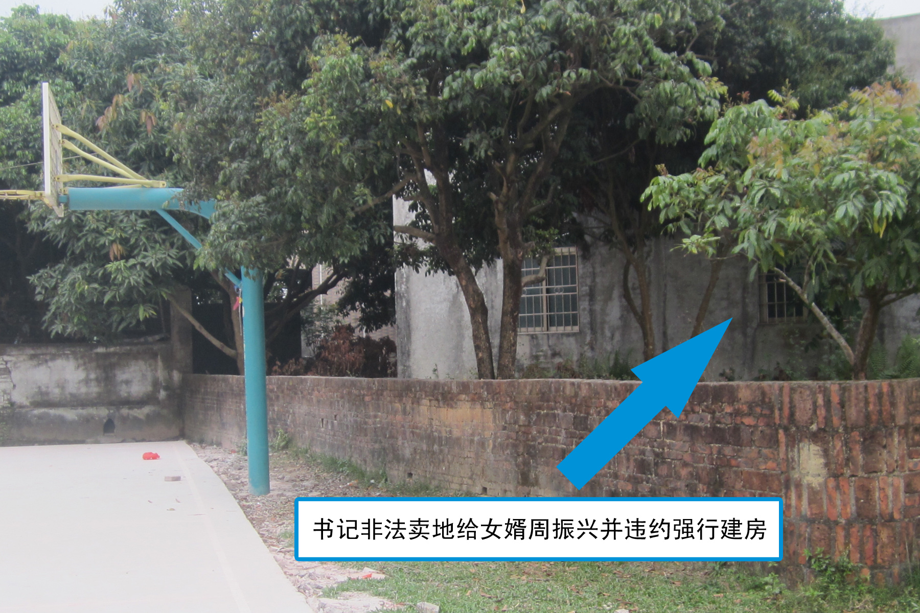 官屋小学篮球场边土地原为周树杰所有,因学校要征用作学生跑道,周树杰与
