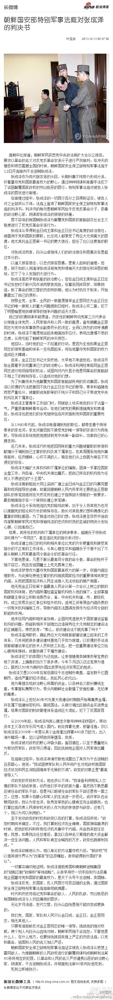 [杨恒均按:下面是朝中社报道的张成泽判决书,我读到一遍就发现这是“天下头号”奇文,但当今文明世界,能够读到一个国家发出这样的判决书,实在不容易,所以我顺手点评两句。蓝色字体是老杨头的有感而发。]