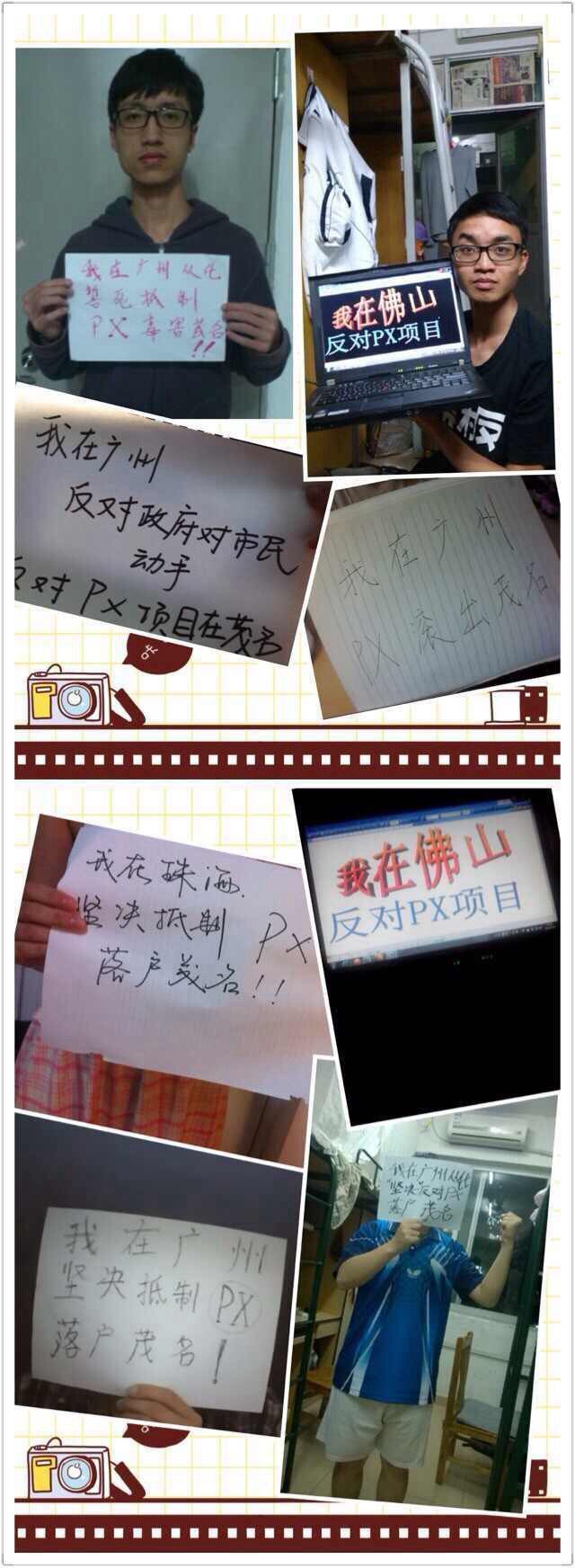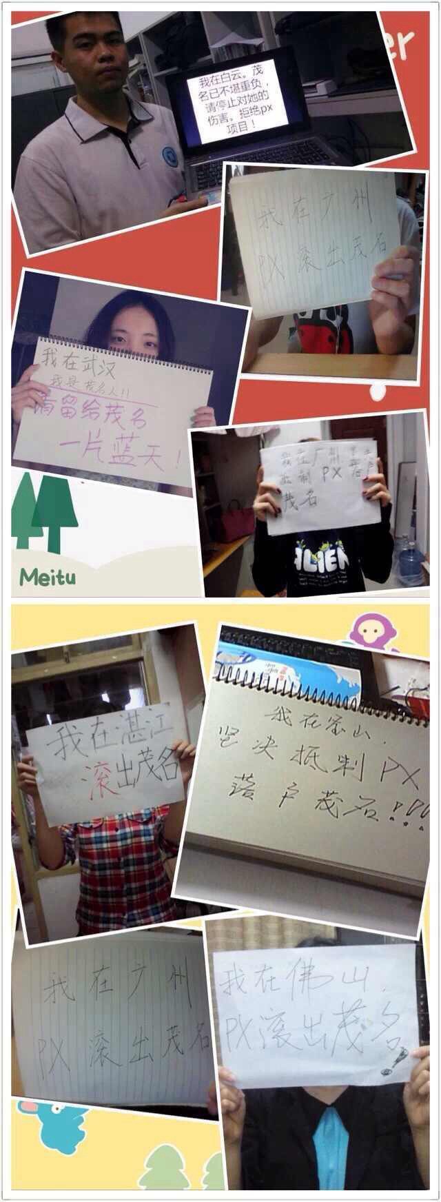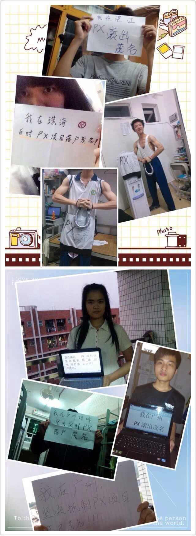 这是来自茂名学子从全国几十所高校发回的诉求与对家乡的期望,我们不是愤青,只是想通过这种和平的方式表达自己的观点,无论这个项目好坏与否,它都是一个不得人心的项目。政府应该考虑的是充分了解我们的诉求,而不是通过打压和茂名人民作对抗,我们不愿意看到暴力,我们需要的只是一个还能居住的家,一个能让我们在外地还能引以为傲的海滨城市…