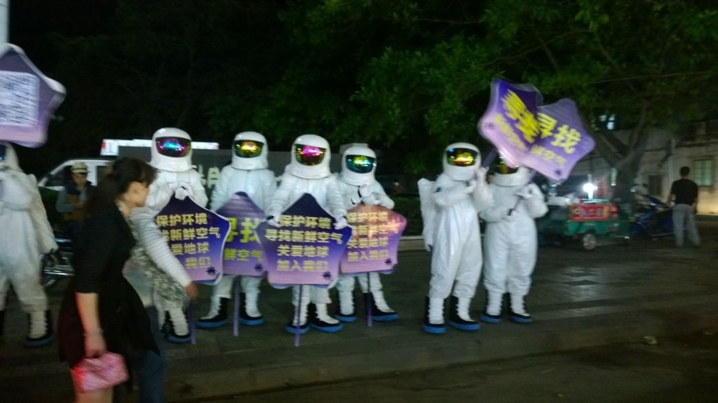 昨晚看到几个环保志愿者在东湖举牌抗议
