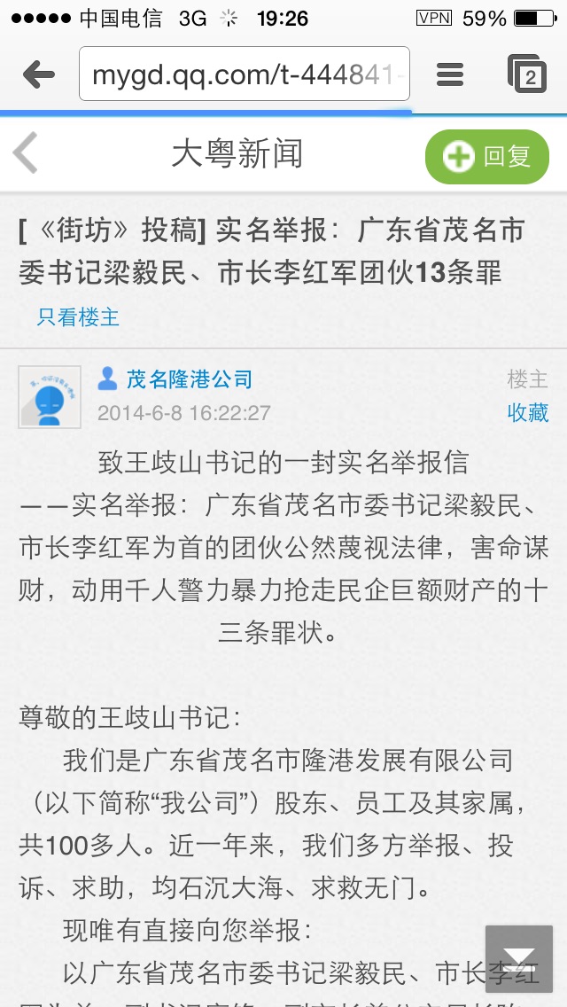 飞将军之所向无敌 研究生 注册 2008-11-11 消息 1,166 反馈评分 13 点数 61 2014-10-12 #156 QUOTE(秋天的墙 @ 2014年10月12日 Sunday, 08:37 PM) 应该明后天见报.哈哈.......大快人心 [snapback]3707742[/snapback] 如果是真的?那么茂名人过去说用鞭炮欢送他另处高就?想不到这回却是用鞭炮庆祝他入监狱?