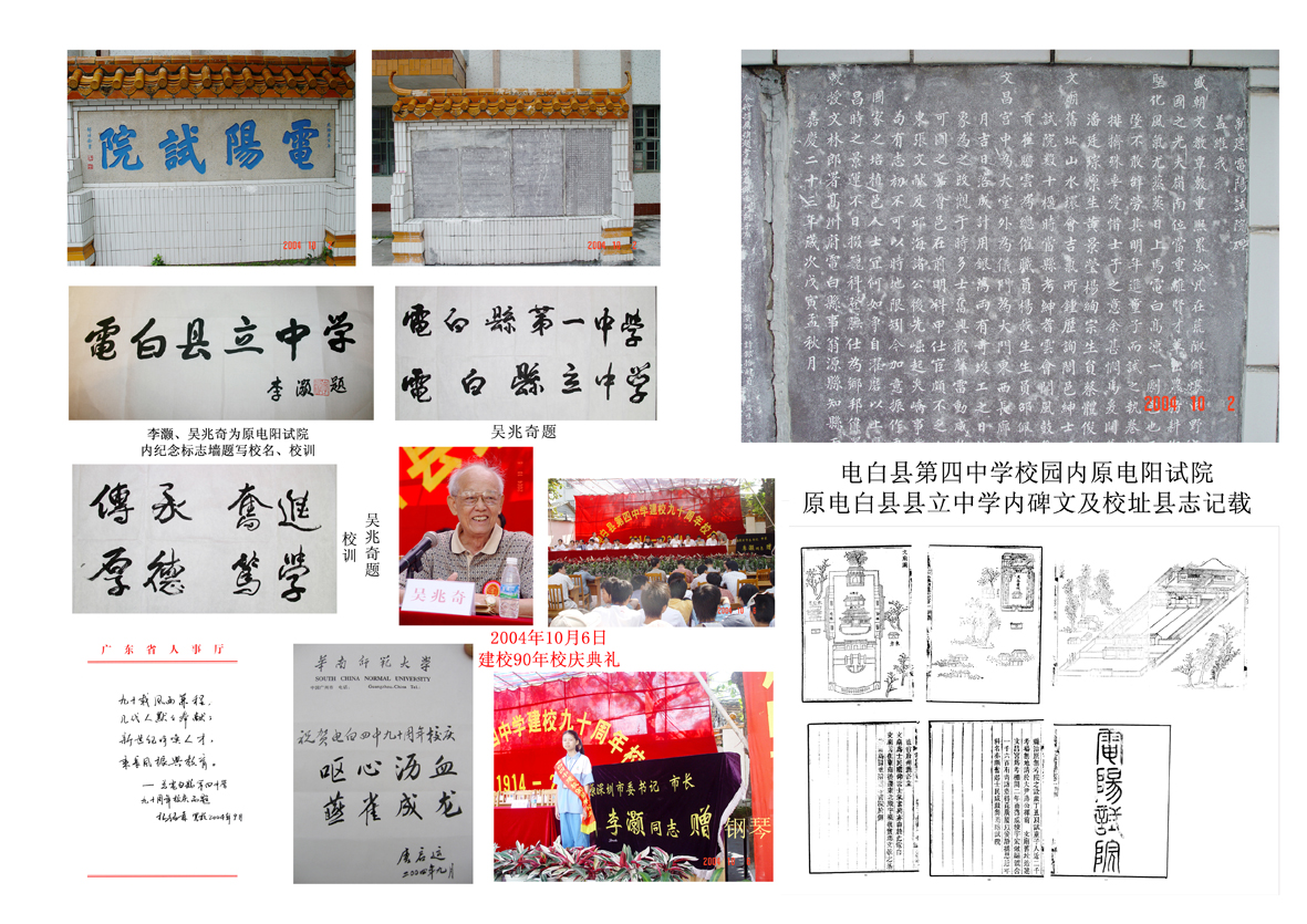 电阳试院是发展的基础,先有一个“电阳试院”这个基础,再发展有三个的“电白县县立中学”、“电白县第一中学”、“电白县第四中学”。也符合传统的易经理论,一生三,三生万物。
