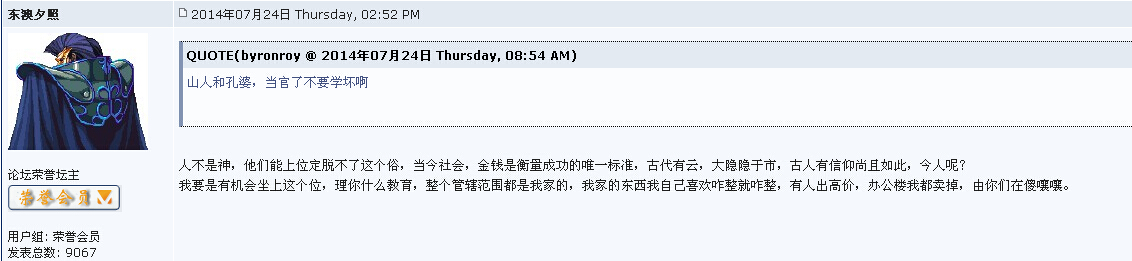 QUOTE(玄海拾贝 @ 2014年08月15日 Friday, 11:07 AM) 总比你贪污公家财产,收受贿赂清廉些。 你怎么跑到又长又臭的文章里大发獗词了?鼻子失灵了么? 看到这个自己的帖子,你不感觉自己的虚伪与丑陋已经暴露无遗了么? [attachmentid=331271] [attachmentid=331272] [snapback]3686897[/snapback] 断章取义