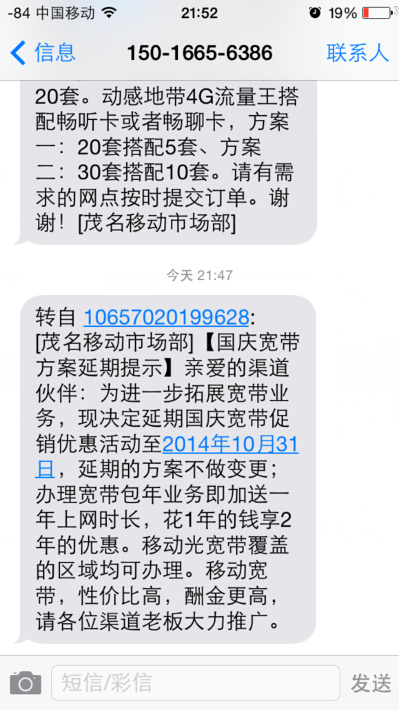 刚接到公司紧急通知:中国移动光宽带国庆优惠活动方案延期至本月底(10月31日)截止。