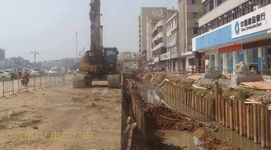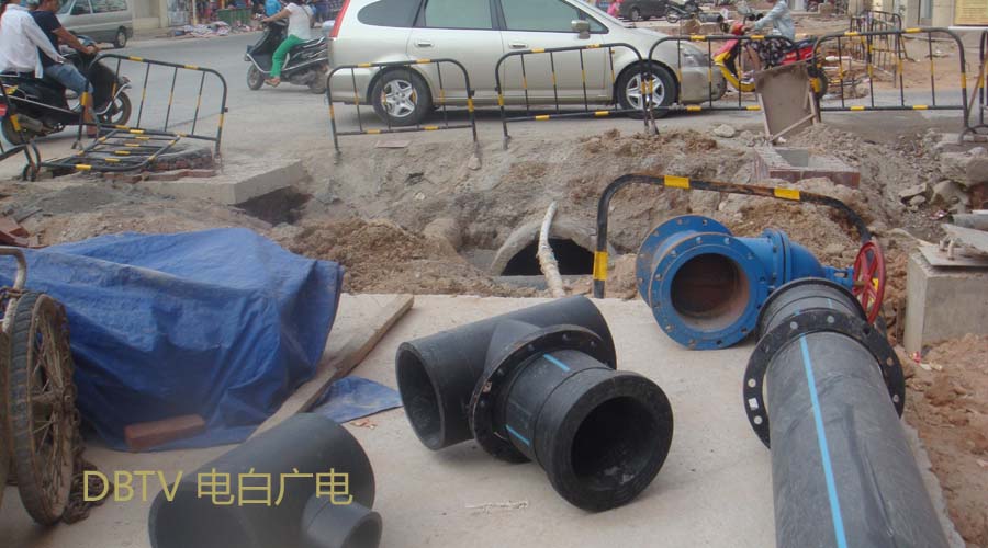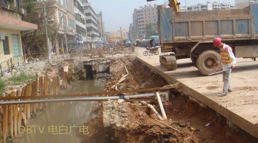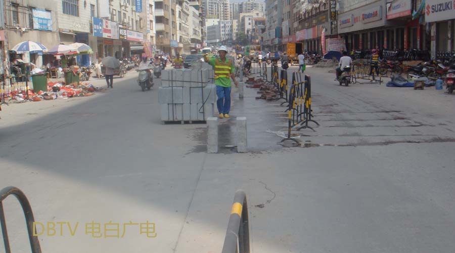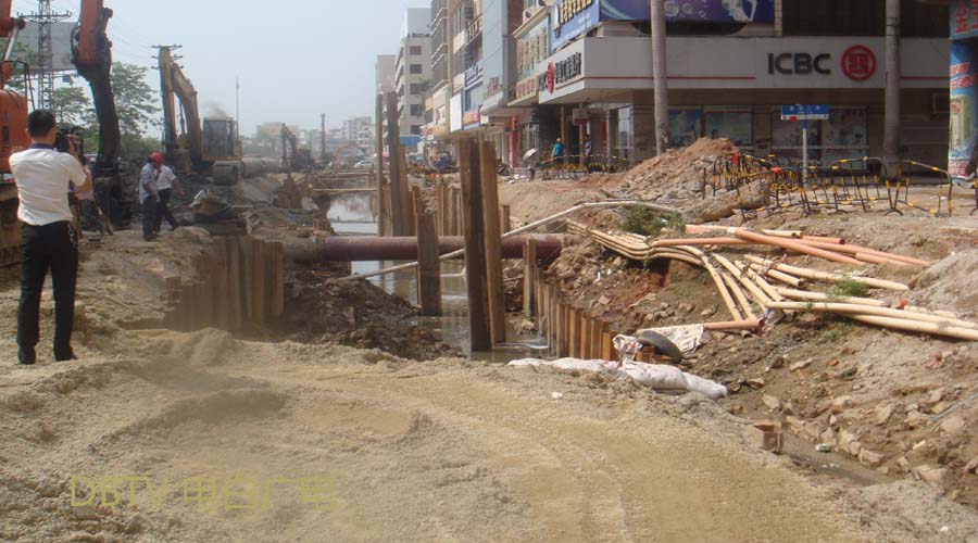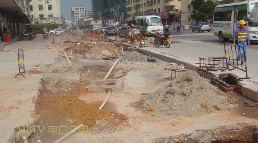 中心台路段,自来水管铺设工作仍然继续进行中,由于施工现场在路两边,来回车辆缓慢行驶,没有造成交通阻塞等情况。