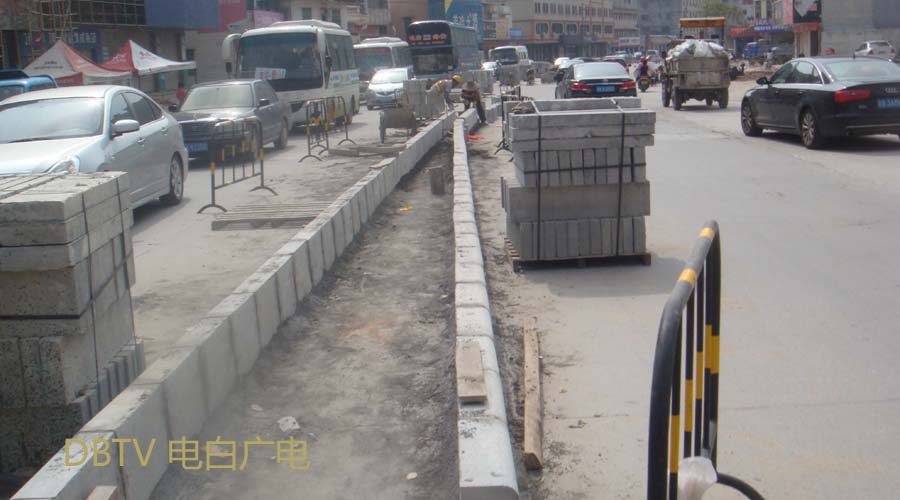 水东加油站至糖果厂路段正在铺设中间路缘石阶段,目前已铺设500米。