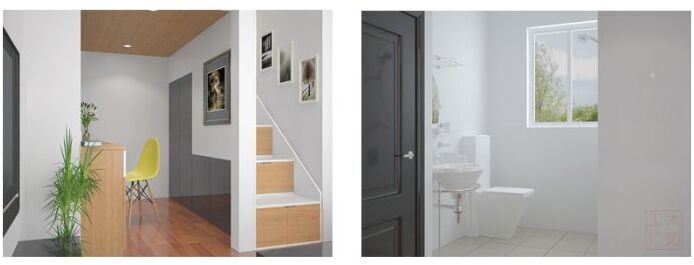 整个空间里还有一个开放式厨房,书房,衣柜,满满的储物空间也可以轻松满足日常所需。在大门的旁边还有一个隐藏式洗手间。