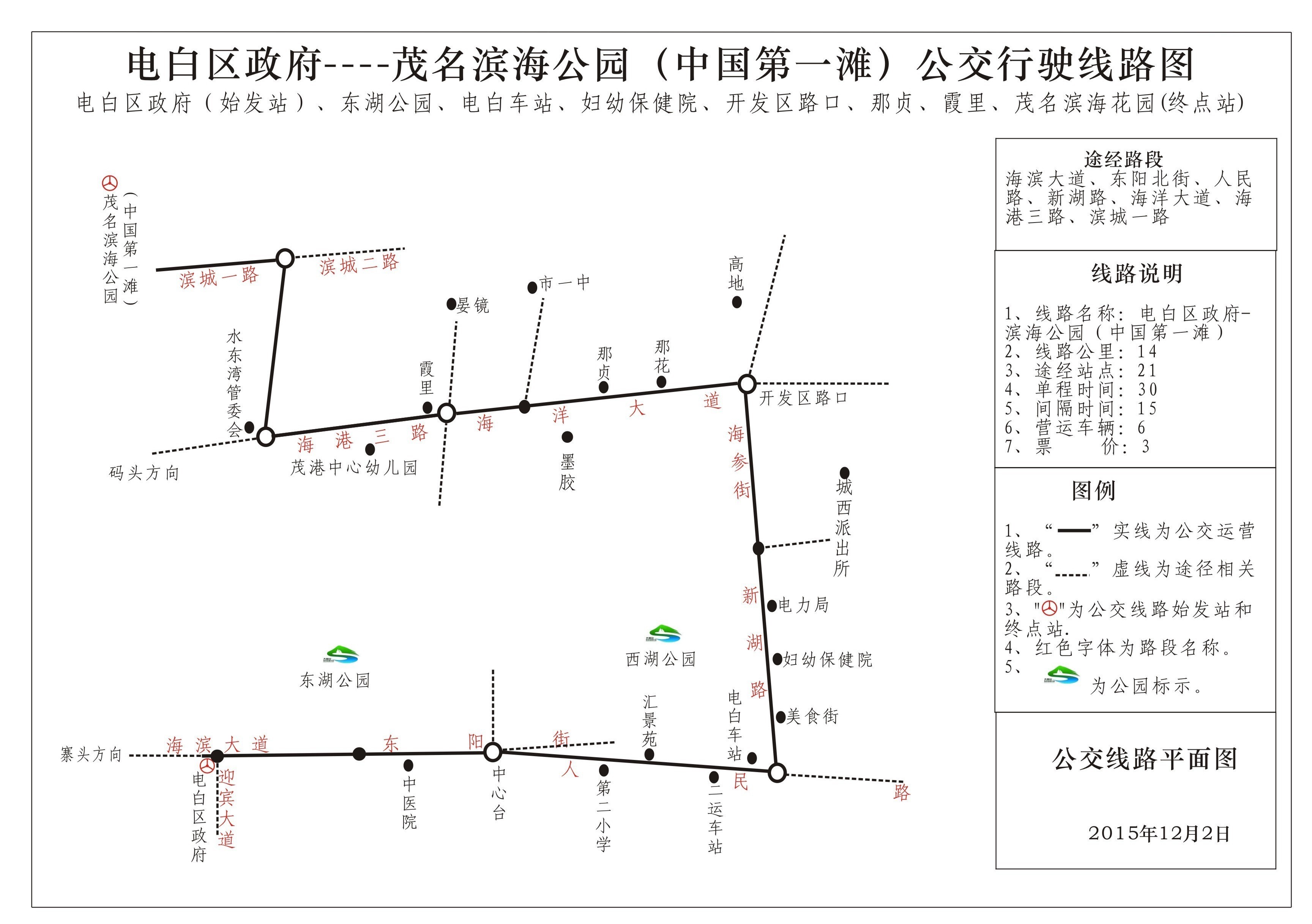 关于开通电白区政府至茂名滨海公园(中国第一滩)15号公交线路的通告