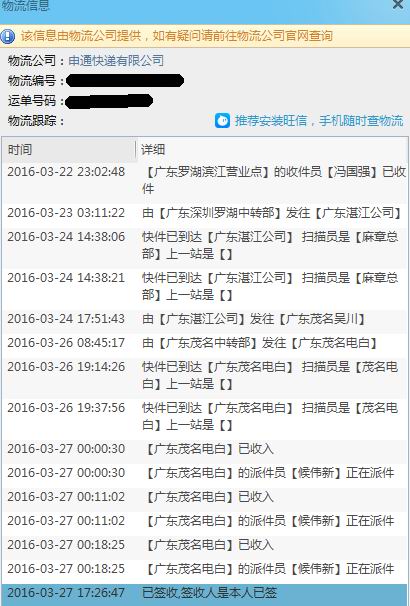 发货时间:2016-03-23 23:27:05付款时间:2016-03-23 18:35:31