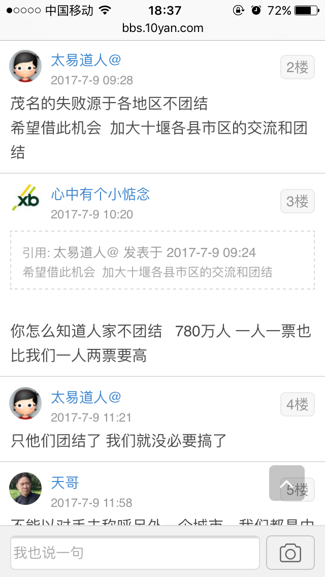 二马先生 说: 哈哈,太搞笑了,是茂南在线论坛删的么? 像这种要登记资料的投票,我一般不参加,手机每天收到的骚扰够多了,不想额外再增加负担了。 点击展开... 小肚鸡肠,让人看小了。我们有人口优势,票数胜出完全没有问题。我想我们不应该单纯看票数高低论英雄,而是在这次活动中能诊断出我们到底那里出问题了,找出问题解决问题,再一次腾飞。