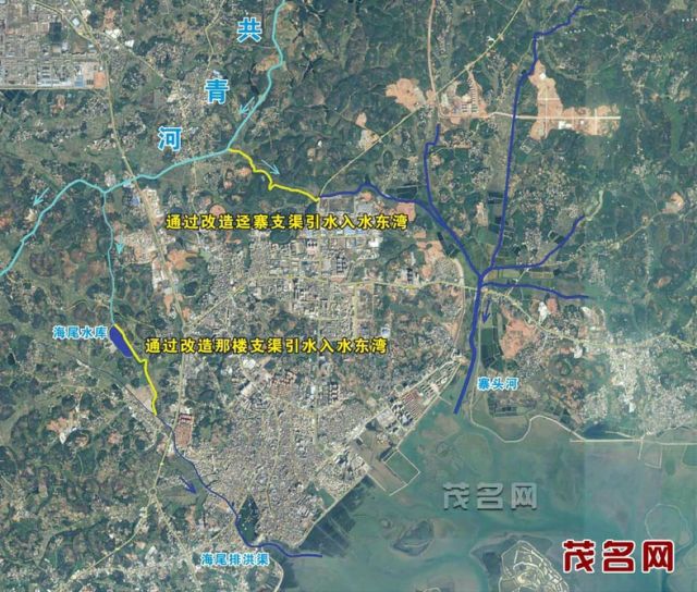 还不如把共青和和沙琅江一起引入水东湾,这样子就是江海城市,不过缺点是海会产生大量泥沙很快就把水东湾填满了…
