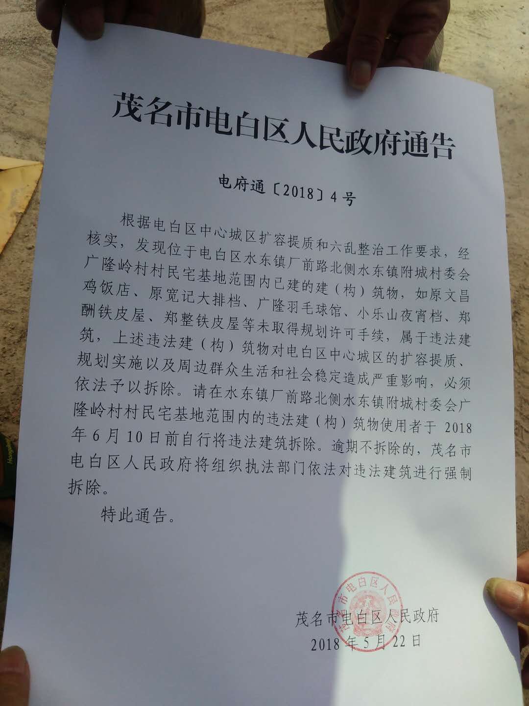 支持水东镇林涛书记上位,区长,把广隆岭村村霸打倒,林涛书记说明天出太阳好天气,拆除广隆岭村违建。。