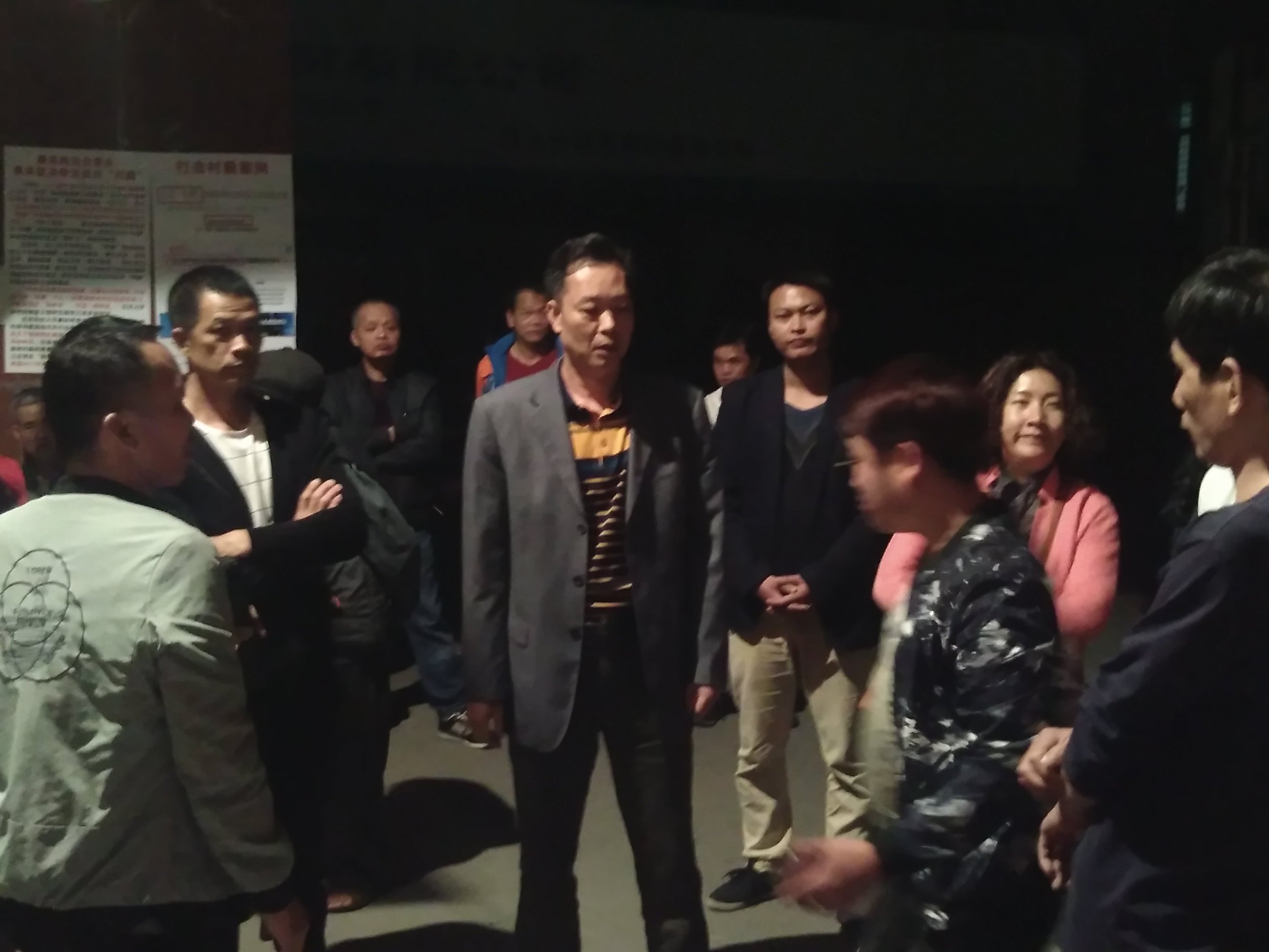 附城管区梁书记当晚来到村中传达拆除通知,表示区政府承诺村民在3月底一定拆除,请村民们大家放心。他在村民会上说:区政府非常重视广隆岭村集体地违建的事,区政府也已经成立工作组,由区政委主席廖福智为组长牵头,上午他们还组织了城管局、规划局、国土局、公安局、法制局等相关部门开会讨论解决广隆岭的事情,说着说着中间突然冒出一句“本来是在春节前拆除的”,真是耐人寻味。此时此刻梁书记面对村民群众说着这些话显得毫无底气,他的舌头都快要打结了,好在村民没有说话为难他,说完匆匆离场而去。