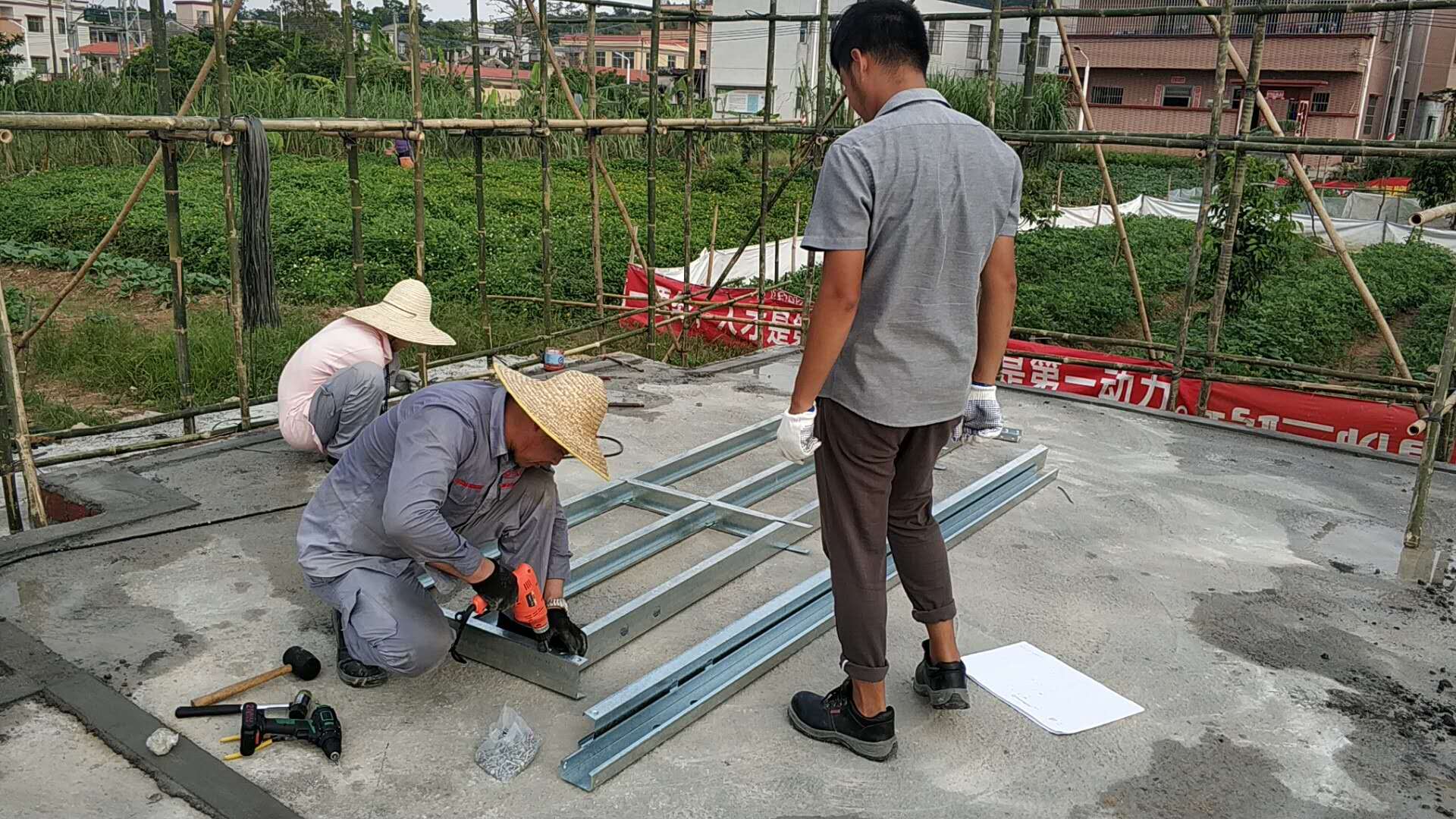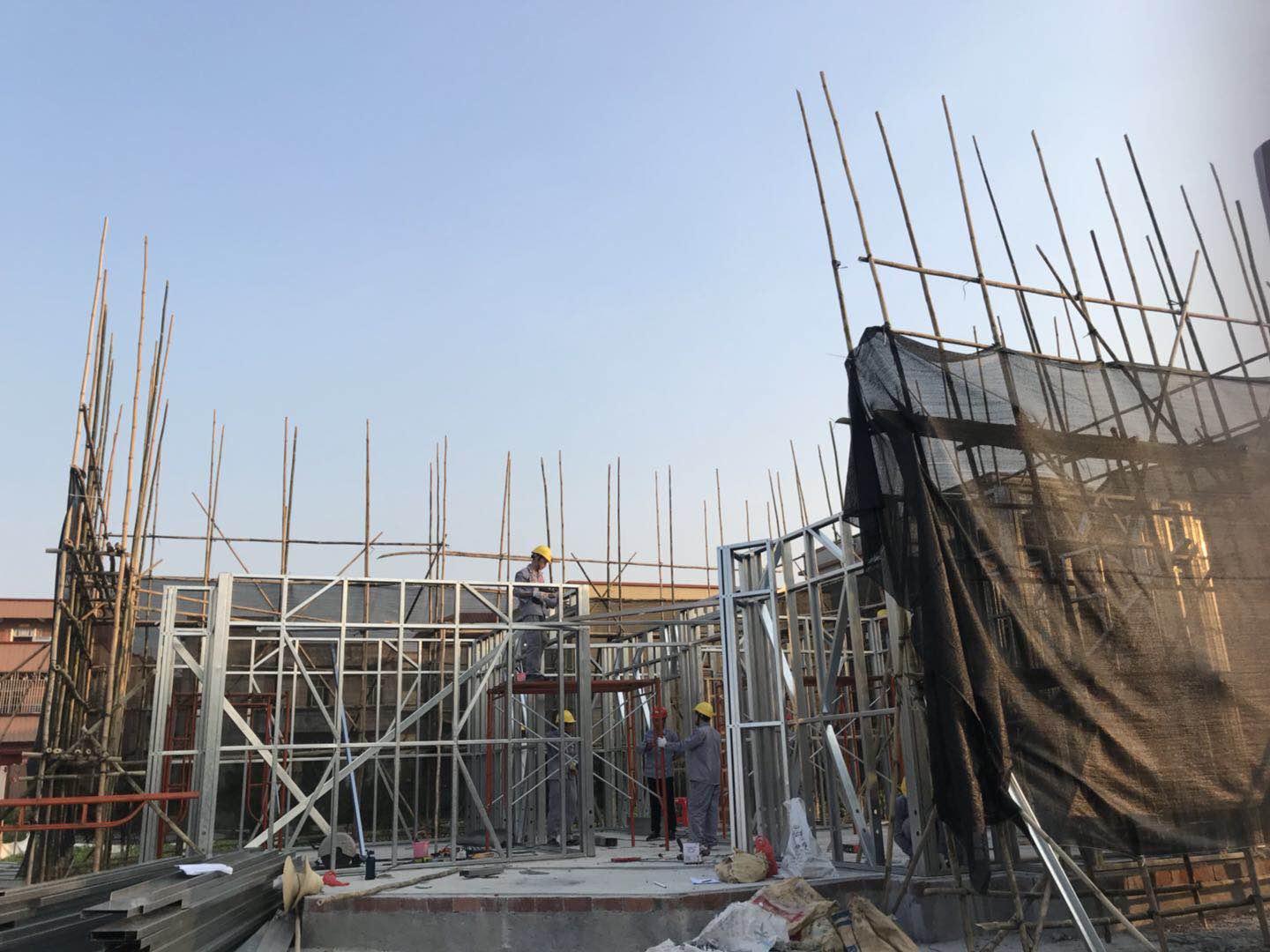 上个月底刚刚做好基础,现在已经封顶了!跟家里人商量后才决定用轻钢技术来建的房,光是这个月就来了好几波人参观,心里还是有点高兴的!听项目经理说12月就能住进去,每天都多一些期待了,分享给大家!等过几天安装墙体了再发一次