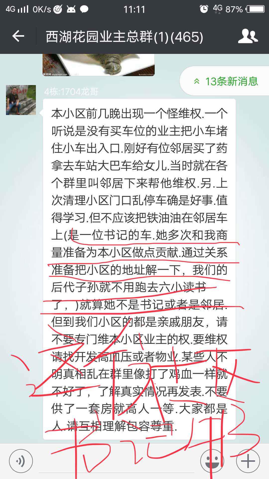 这个所谓的群主4栋1704自称龙哥就是个汉奸,自以为当上群主了,就高人一等,反正你在群里发什么关于楼盘的维权信息,他就踢你出群,如果生在战争时期,绝对汉奸。