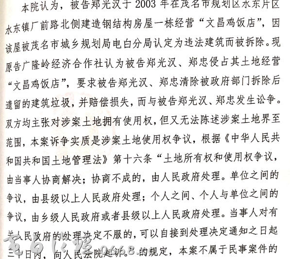 广隆岭村22亩集体宅基地被村霸占用十几年,维权十几年,去年全村热情高涨正式扫黑除恶打村霸到现在一年多,上个月广隆岭村全体村民向电白区人民法院起诉村霸侵占村民集体宅基地,却被电白区人民法院的黄敏法官驳回上诉,判定认为土地存在使用权争议,水东镇政府,电白区人民政府,包括相关有关部门各个局,还有电白区开发公司征地合同证明该土地属于广隆岭村集体宅基地,依然被枉判,把事情推回人民政府。现在政府搞双创,要下文件让广隆岭村清理强拆违建的20多亩建筑垃圾,这里是不是有什么阴谋?还是说政府认定是我们村的土地,而法院不认定是我们村土地?是黄敏法官打政府的脸,还是政府打黄敏法官的脸?还是想利用我们去帮双创干点活?请政府解释一下,村里之前开个会议决定去清除,到时候村民跟村霸双方发生什么冲突,或人员伤亡政府要负责。 mmexport1548229234155.jpg downloadfile-4.png downloadfile-3.png downloadfile-2.png