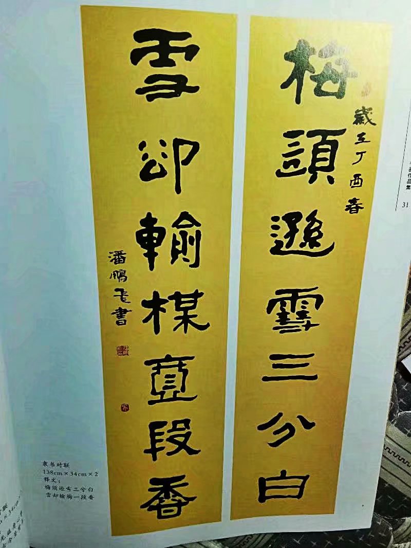 潘鹏飞的书法达到了炉火纯青的程度,他写的字体多样化,人们常用“颜筋柳骨”来泛称书法极佳,我不懂得用专业语言去评价一个书法家的作品好差,我看了潘鹏飞的书法感觉是靓、耐看,雅俗共赏!有的书法家标新立异,写字像画鬼符一样,“行家”对此还是赞不绝口,而凡夫俗子却看不懂写的是什么字。潘鹏飞写的《舞》字,力透纸背,他腰板硬朗,神采奕奕,真是《舞》如其人。
