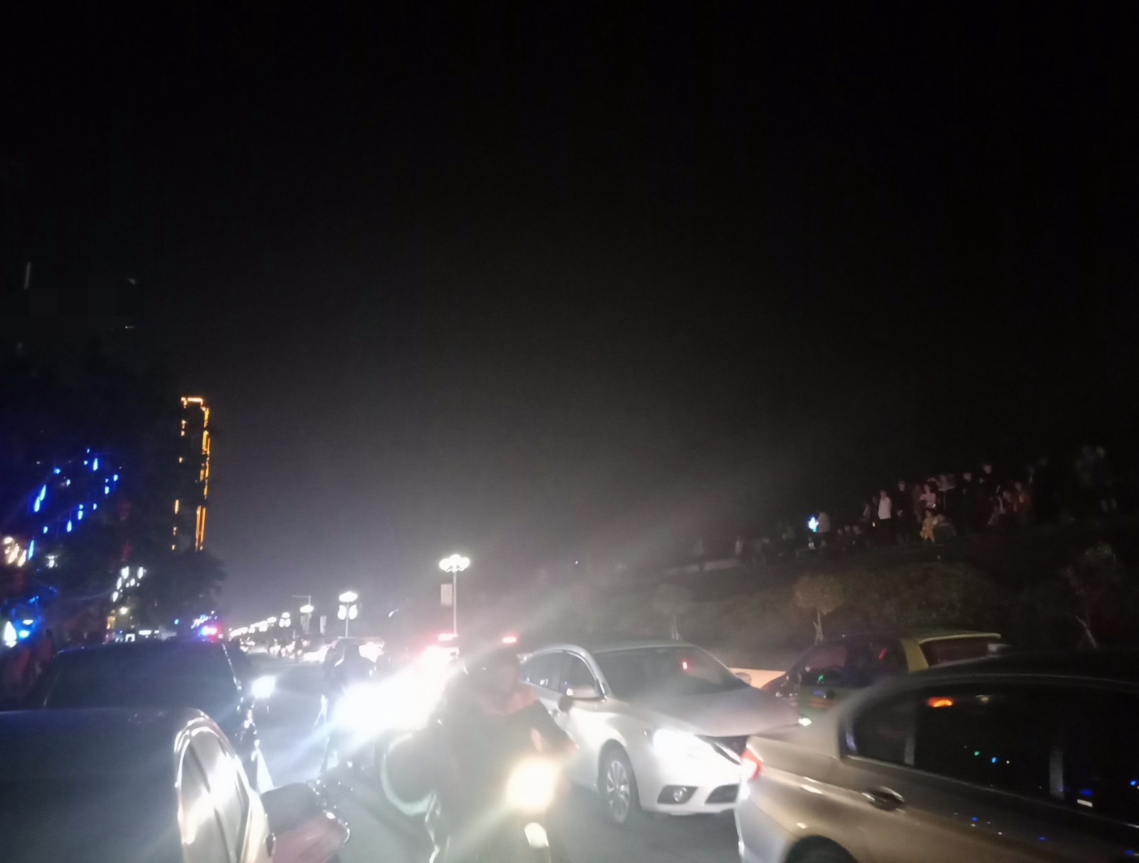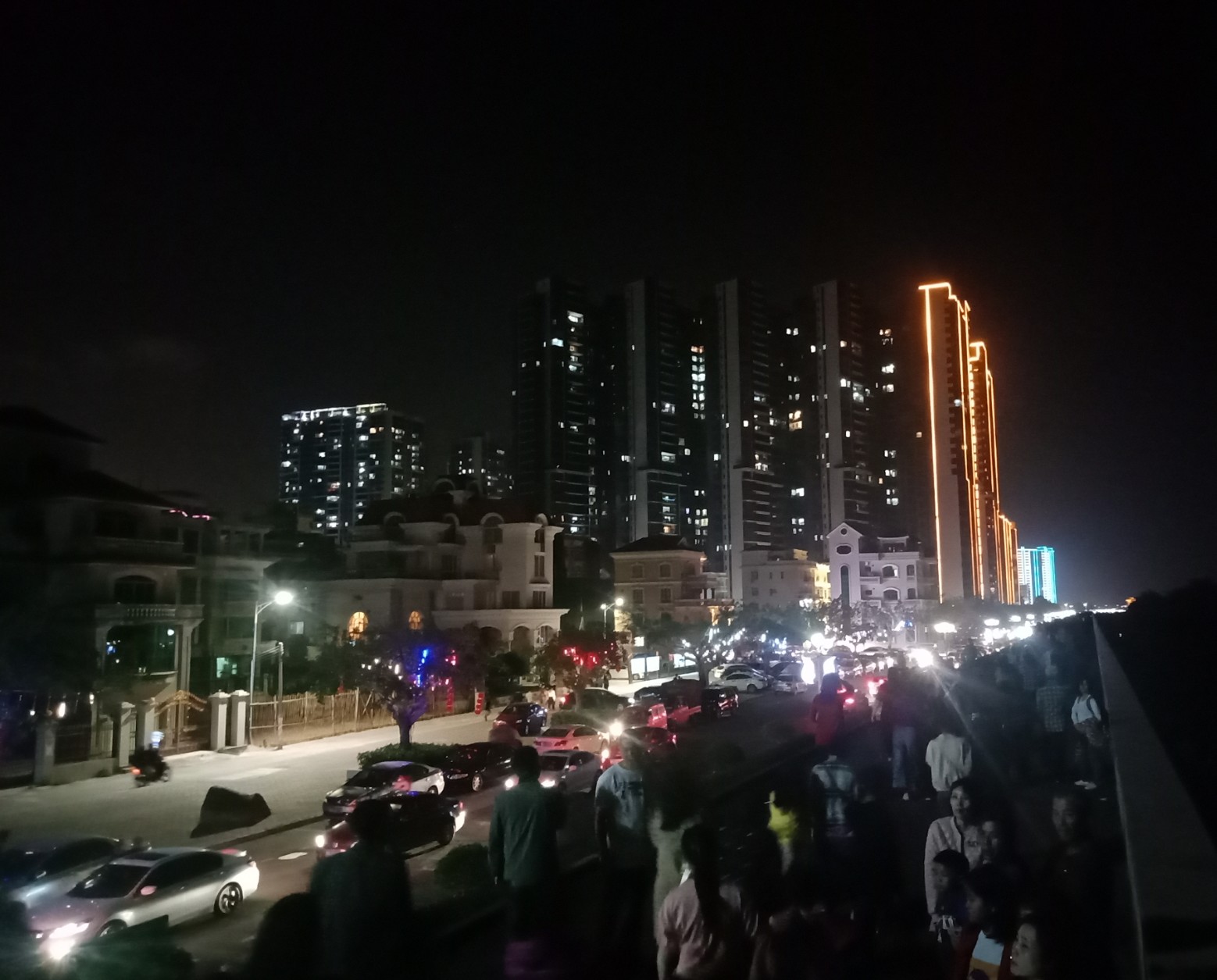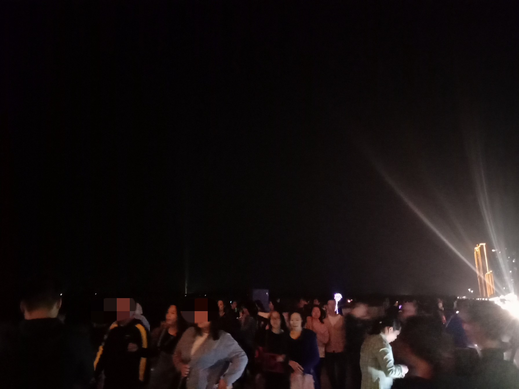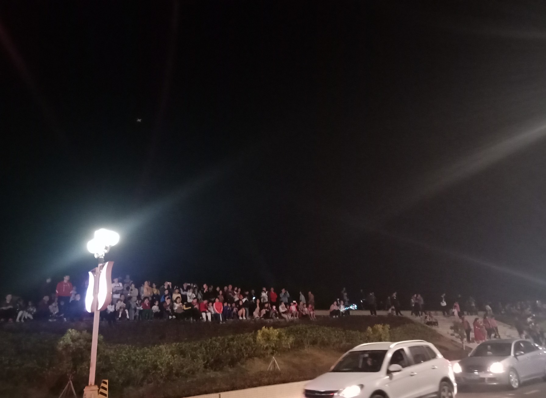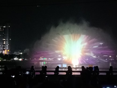 今晚特意又去吸吸,貌似还有些人婆知?围住湖边或坐在石椅上,而海堤绿道上也有好几帮人(有些带着老人小孩~),坐在石阶上,人也不间断来回,而该路段车辆也不间断(诂有些开车过来吧?)~,不过嘛平常那带也有好些人在徒步散步等,瓦也以为他她们徒散步的,后见他她们久久不离去,而当时时间也过了开场时间段,后来走近听下他她之间所言,才知是来看这的,其实大部分人貌似已知晓活动时间,况且各报到各媒体微信等也有传知吧~况且那一带都有告示等等~,再过后,瓦就跟他她们说下:春节期间是年初一至年初六开灯光秀,而过后,如无设备故障或天气或其它主观客欢原因等,可能就每个星期五与六晚开机,而时间也应与春节期一样或其它吧~(其实我对他她说的,并没有本贴所描的这么整洁,只简单告知下他她而己~并加多一句:反正还早,就驾车或徒步过栈道那边走走逛逛,(不过今天今晚突然有点冷,风有点大,特海堤边,要注意保暖哦~这些是心想的没有跟他她们说的),看他她装束衣着也是有备而来的~