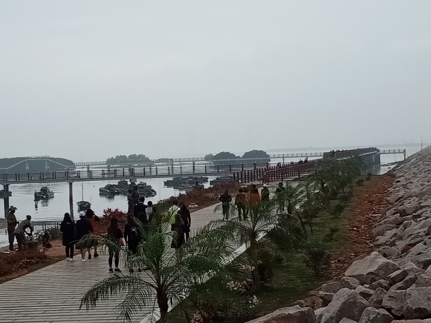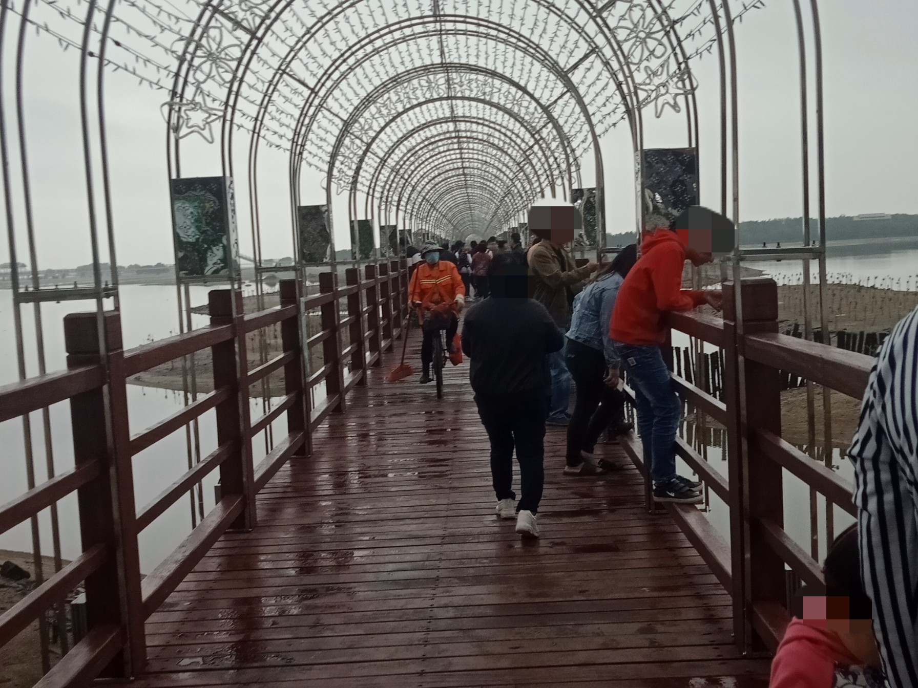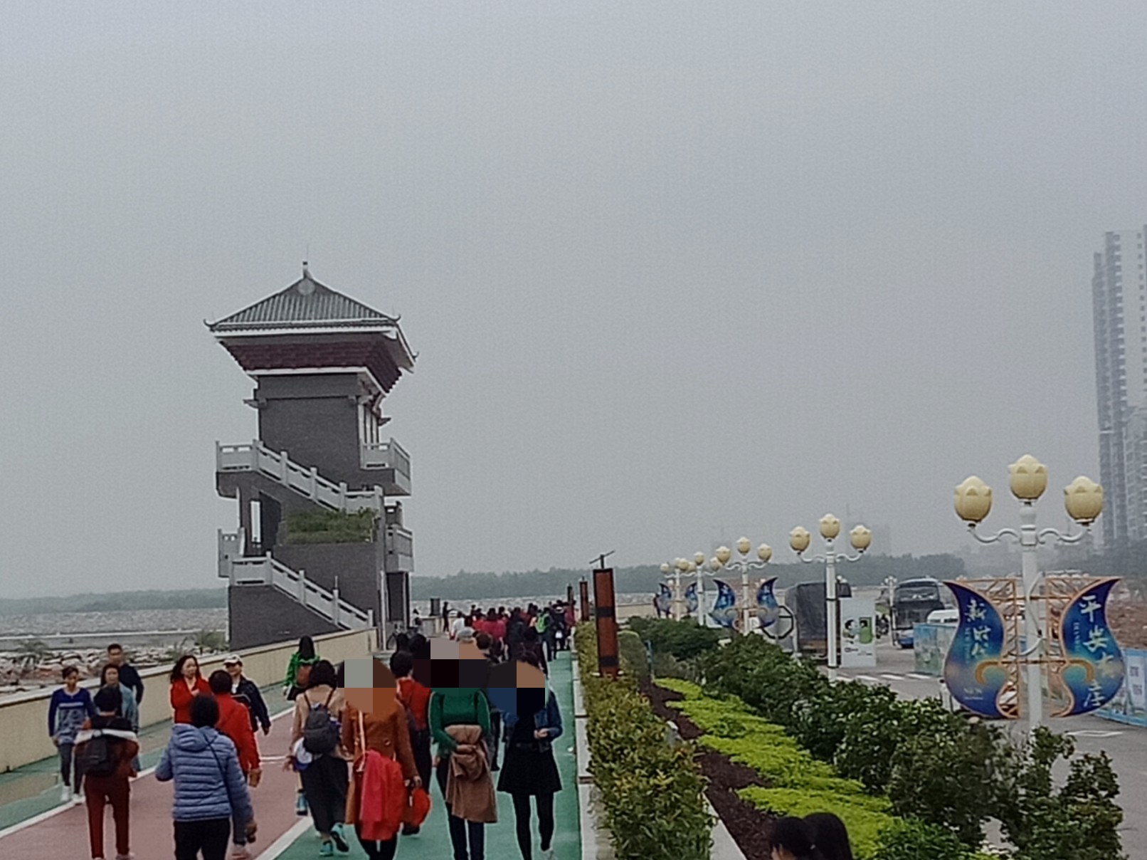诂计他她们的尊贵游客们也有些先来的也徒步游看了两个几钟吧?诂也会规定下时间回来集合,再到下一景点?也拟见些,游客续渐走回游巴,或忘了去下洗手间再返程去下,诂现在好多大巴已不配置洗手间了?所以瓦觉得那几辆较靠近观鹭阁下的游巴够酲目,先让有需游客先去下洗手间,也可从观鹭阁旁那入口侧面下去走走看看(那是暂时唯一公厕),我反而见到些游客直接从亲水平台那下去走上栈道后,走完后回到车上,才觉要去下洗手间,或许这样会担误行程时间,或全车人在等,不过谅解万岁,(或许栈道周边也还有很多细节的东西或因主观客观原因未尽善尽美,也望谅解),反正游客们大家有缘走在一起出来散下心,也算种缘份,图个开心!回去后心情会更好!