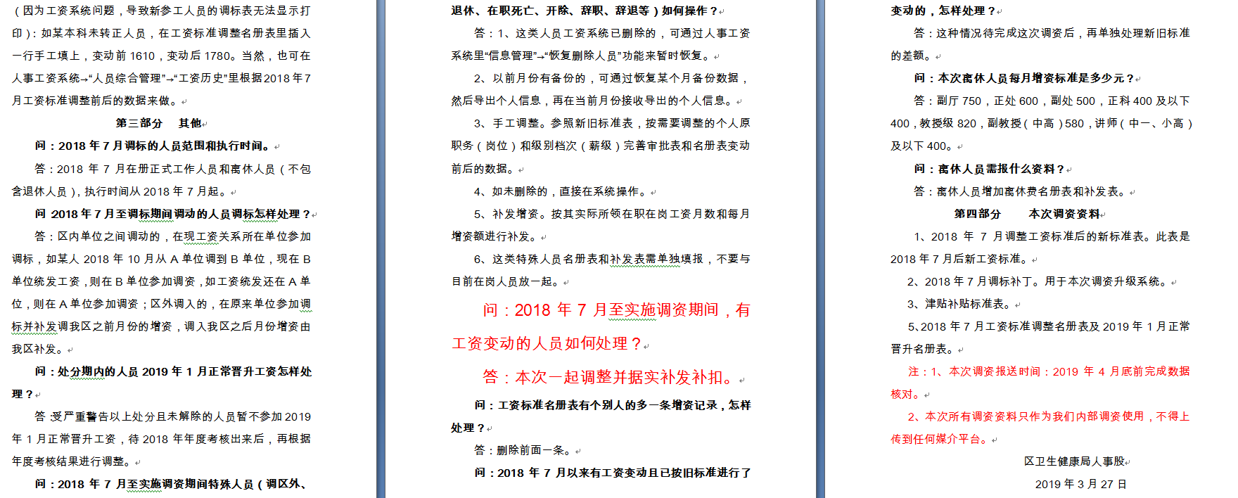 问:2018年7月至实施调资期间,有工资变动的人员如何处理?