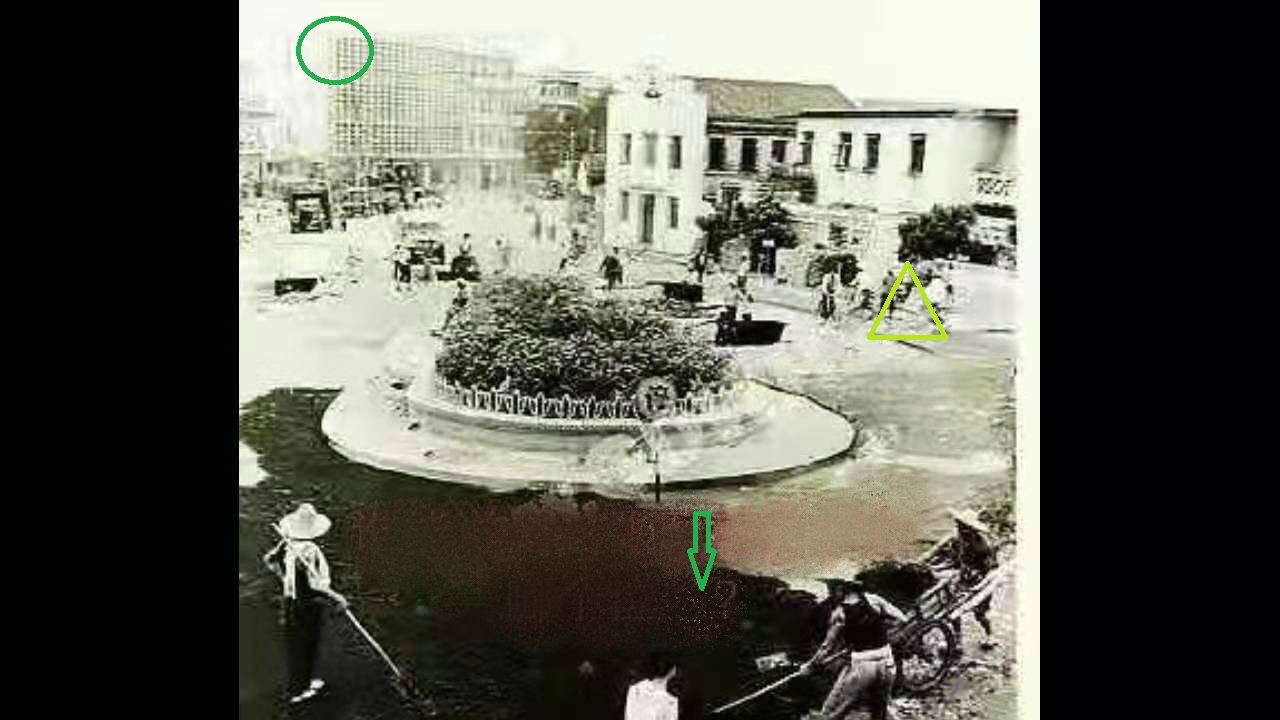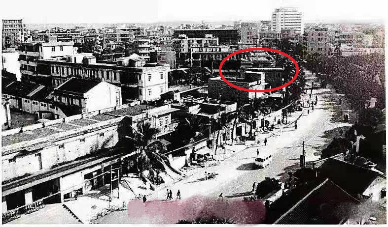 这张照片曾被坛友上传到电白论坛,引发一片猜测。经老水东提醒,照片是水东中心台及其周边单位,花池在水东中心台的西面,也算是中心台的范围。有箭头指向处是30米远的水东解放街入口,入口在民国时期是有栅门的,一到夜晚一定的时间,就有更夫关闭,栅门外有墓地;绿圈处是水东旅行社塘遗址,三角符号处是电白县邮电局。