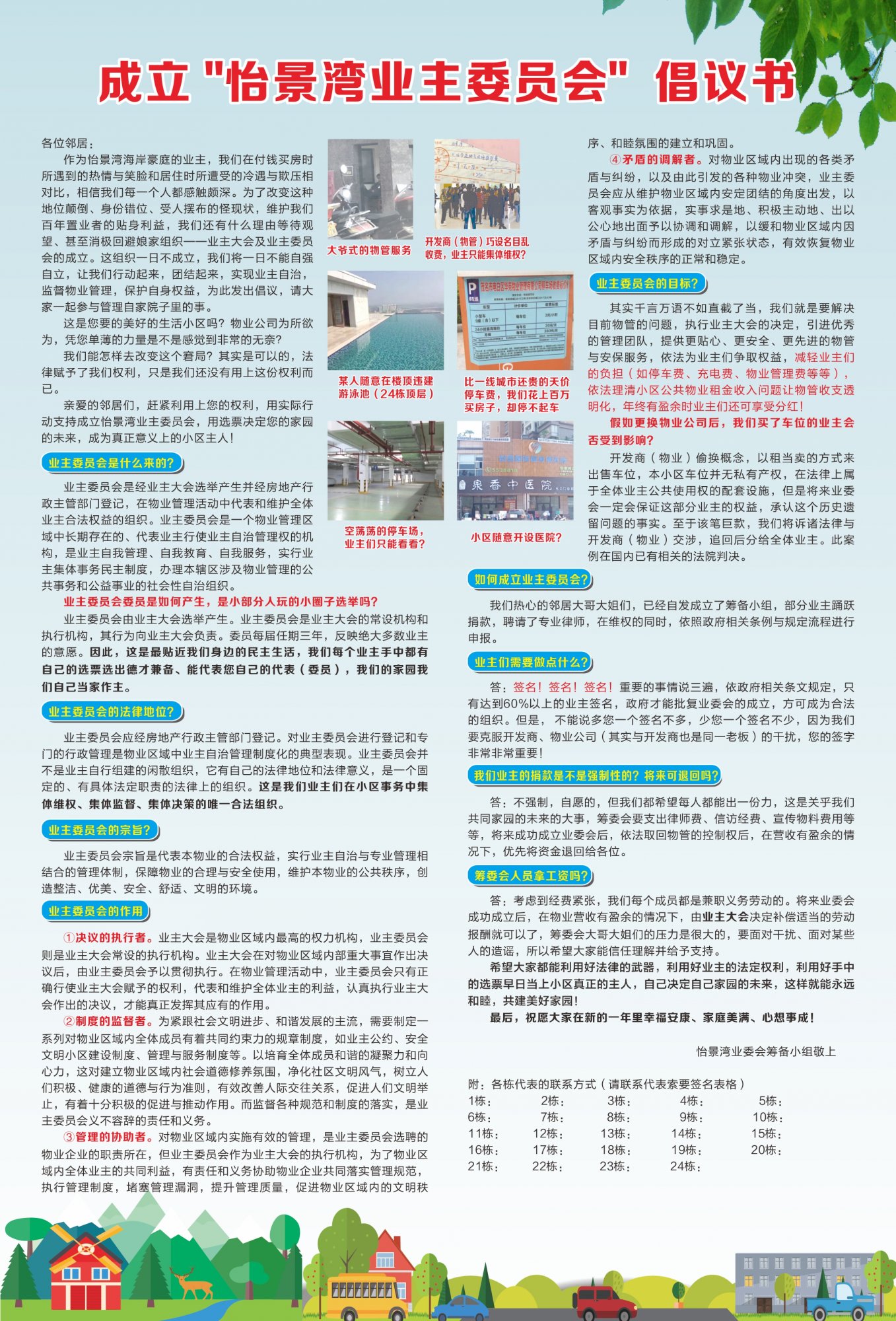 海 海滨湾 博士后 注册 2019-07-15 消息 1,693 反馈评分 106 点数 101 2020-01-12 #19 成立业委会很简单的,派几个业主去社区申请,提供全体业主名单,然后筹建,集中业主开会,选举业主委员会和正负主任,制作工作章程ok