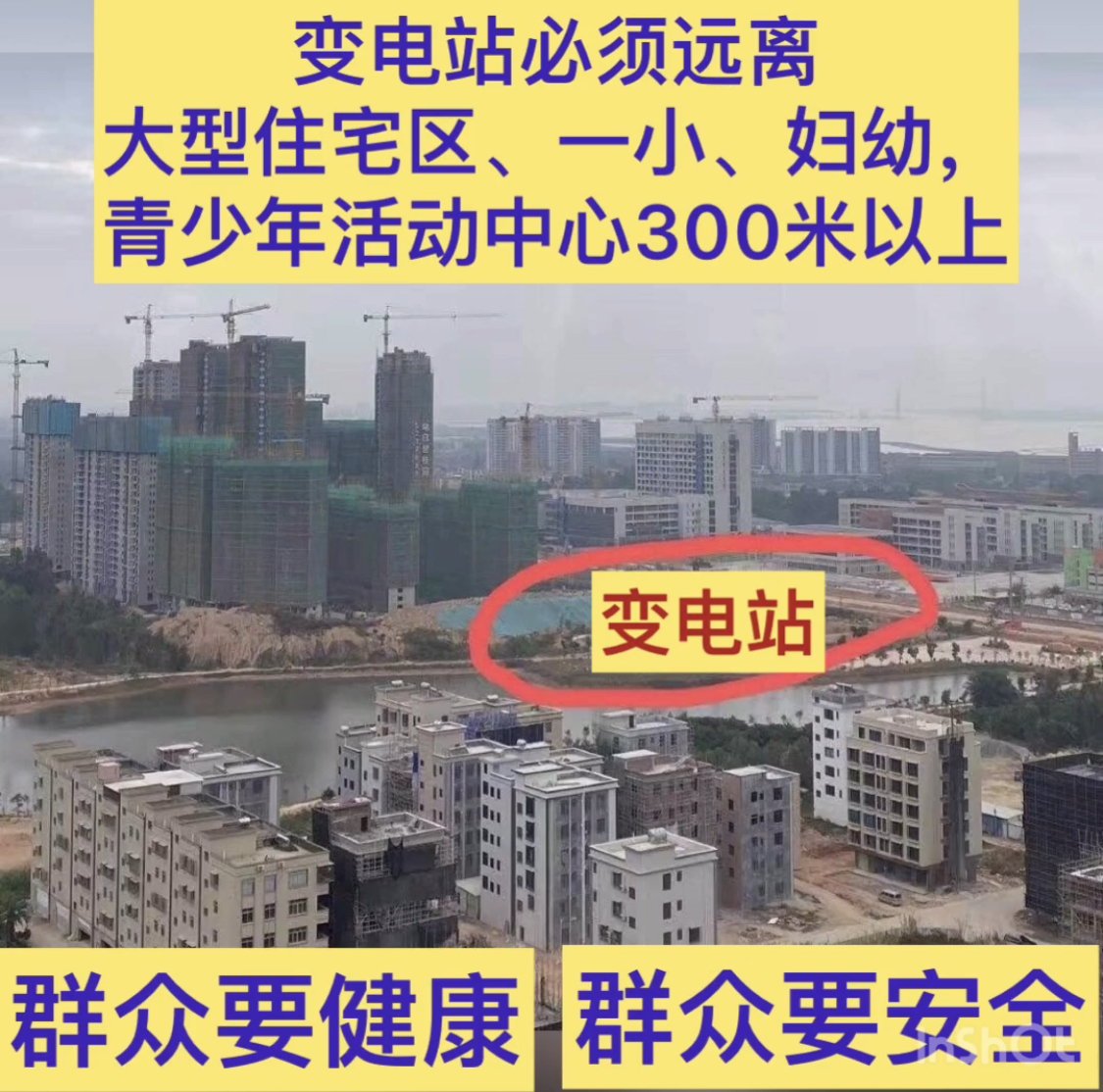 1.御湖公园周边发展,建有一小、体育中心、妇幼、碧桂园大型住小区、农民住宅区、大型酒店等,是电白以后发展中心地带,也是人员密集区域。变电站建在御湖公园内占用了公园用地也是影响到全电白市民平时休闲活动场所,也会影响到城市后期发展和周边生活的市民、小学生、妇幼院等人员健康、安全潜在的危害!