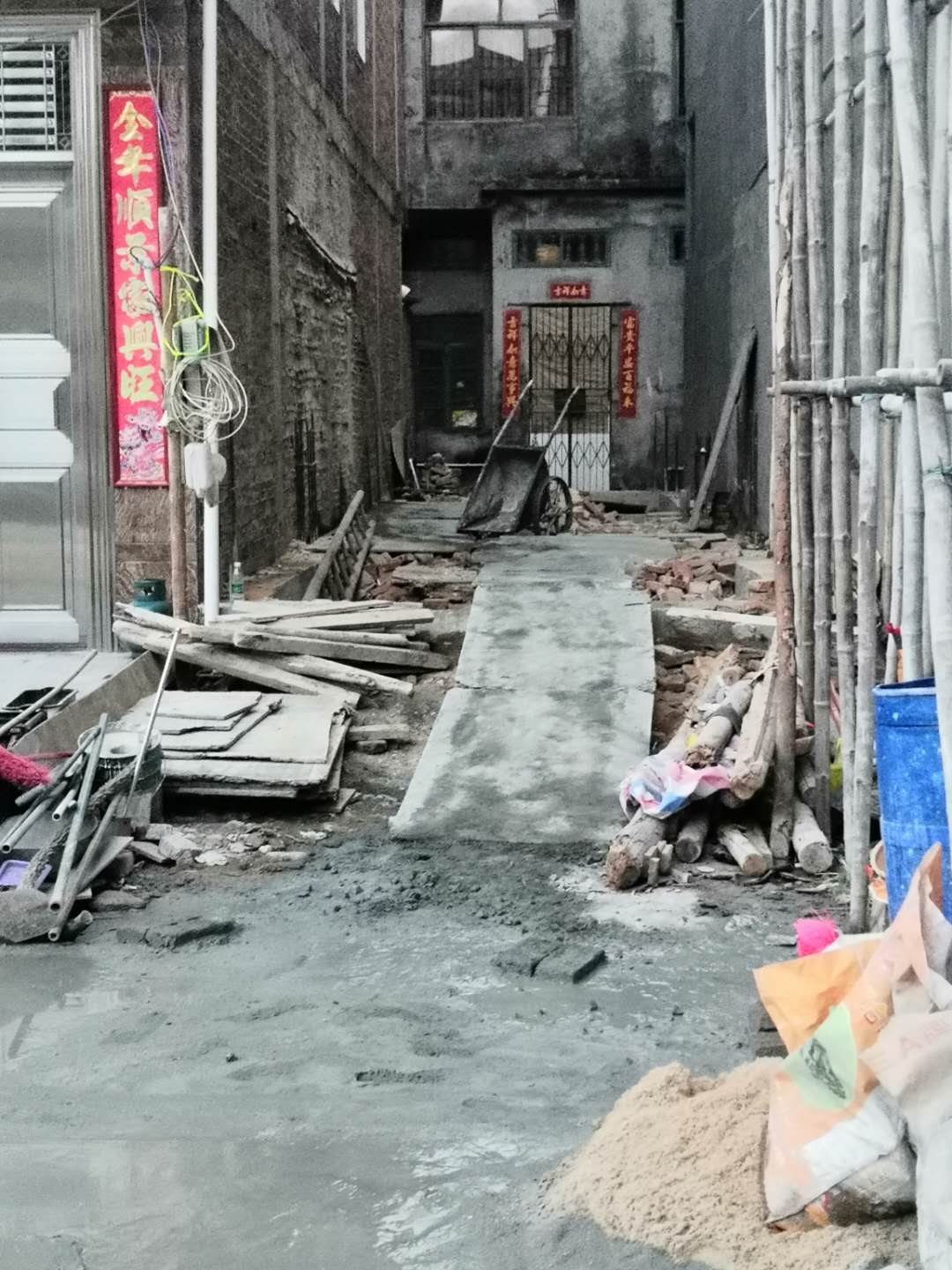 而李新住几年后出外发展该违建建筑一直空置,期间多次以各种理由不肯拆除,更租借于别人(欧碧容)居住,以此一直霸占此空地。今年6月底欧碧容因搭好新房屋而搬离此地,现李新在无证情况下进行偷建,我已向相关部门反应此事,在相关部门进行调解期间李新仍然继续抢建,甚至无视政府警告依然我行我素,态度非常恶劣!