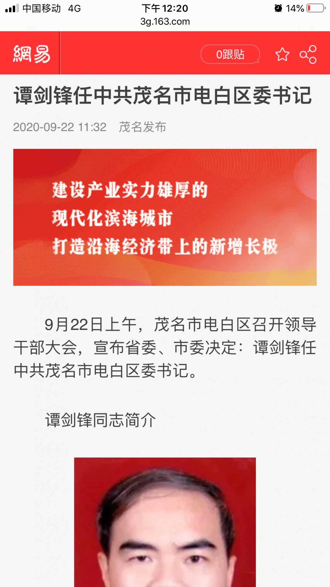 爆料 谭剑锋任电白书记的新闻全被删了,诡异。 (2人在浏览)