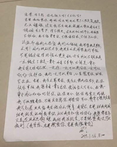 「阿姨再见,我们在梦中见!傅阿姨,我爸爸的房子要垮了,让爸爸不要生气,不要跳楼!傅阿姨,你要看好我爸爸!阿姨,医我的钱给我们学校一点点!多谢阿姨给红十字会会长说,我死后,把剩下的钱给那些和我一样的病人,让他们的病好起来......」!这封遗书让傅艳看得泪流满面,泣不成声。