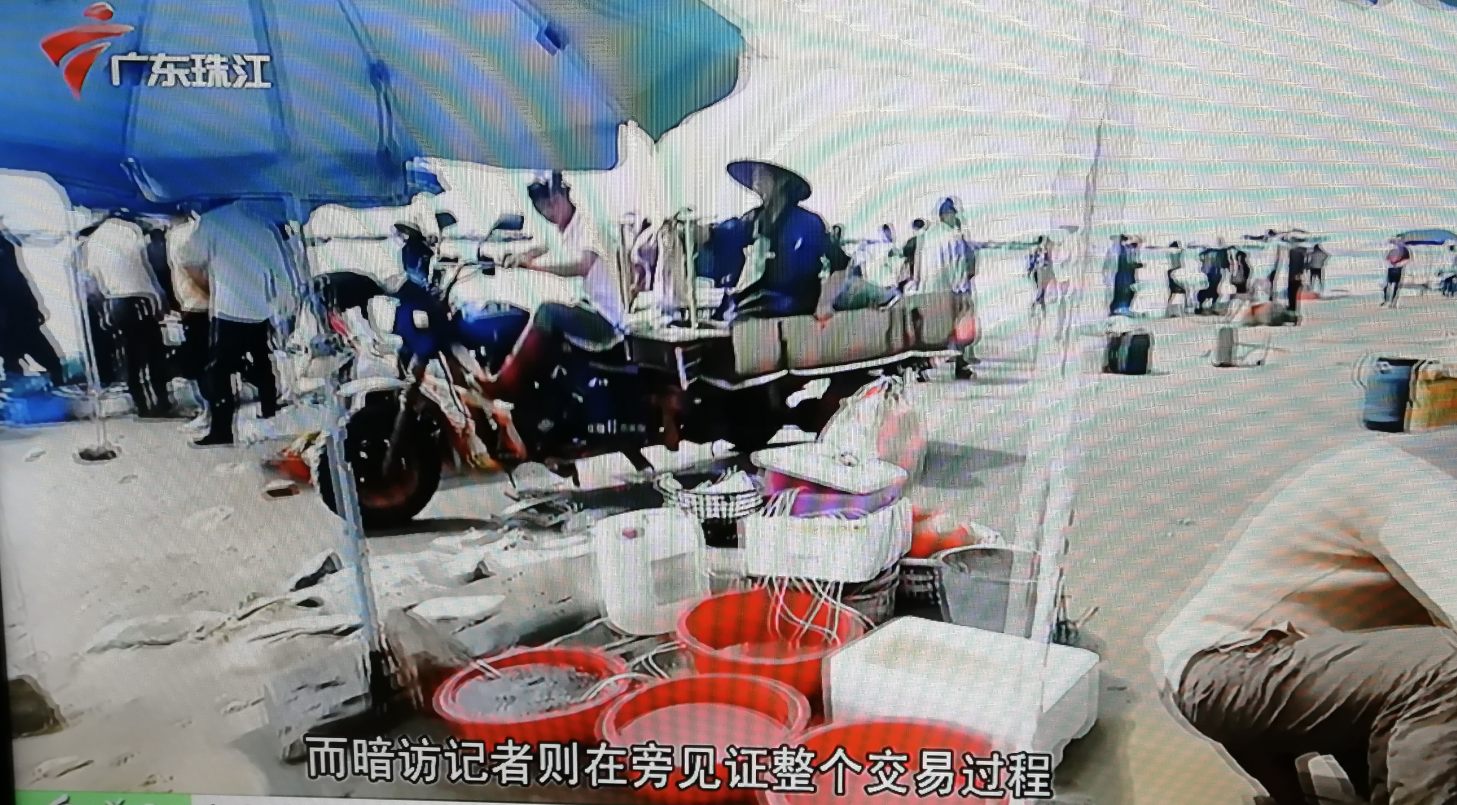 3.15 电白上了珠江台头条新闻,珠江台播出记者暗访沃内海摊贩出售海鲜短斤缺两的新闻。