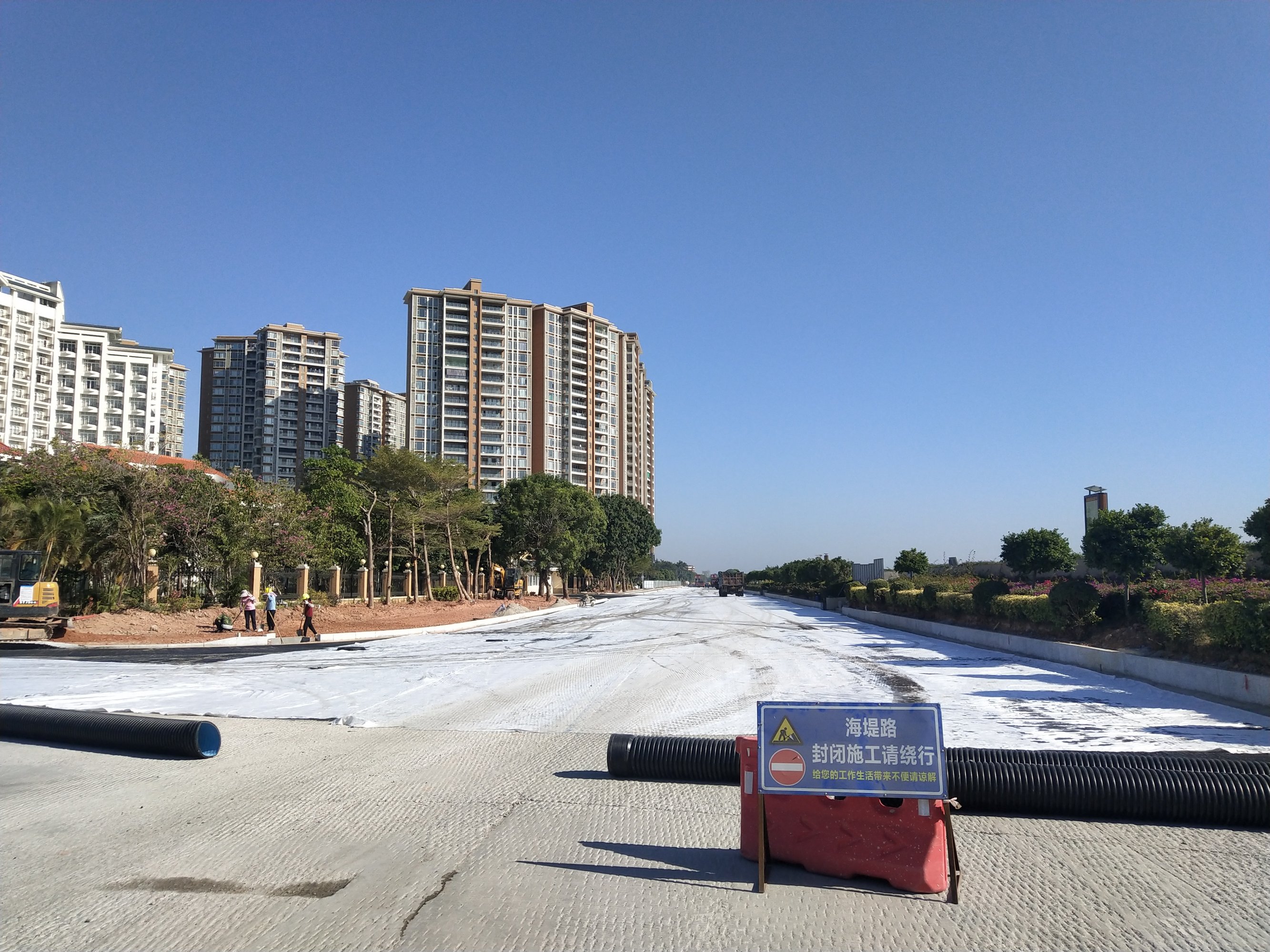 走了下海滨登步那边,站在中间一眼望去感观还可以挺宽敞,见人见异,戴了口罩,味道还是有点浓,原则上还没能通行,特别小车,不过也希望等沥青再硬点也好,还有水槽铁皮拦着各路口,现在还在施工与各种配套设施,有见路灯底座架等等,