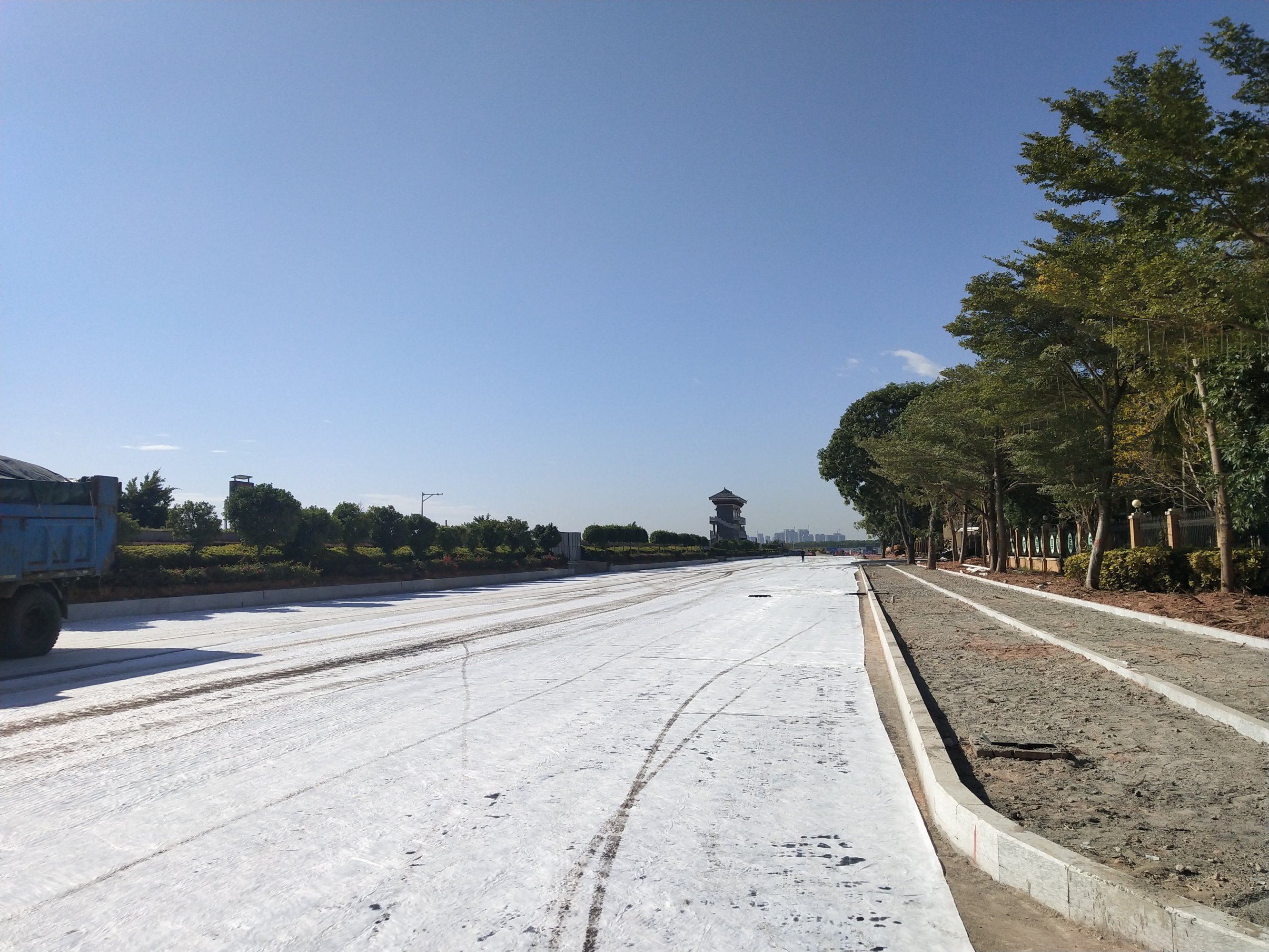 今天沥青像已铺设到观鹭阁这边了,见还在施工当中,所以没进入,只在向洋大道排洪河这边看了一下,新铺设的沥青所散发出的气味很刺鼻,受不了,所以没从这路口踏过新铺设的沥青,走到对面的海堤绿道上面,沥青味道真的太浓烈,没有停留多久就掉头走了,所以也只拍了一张而已,过几天等沥青味道没那么浓烈时再去走看,