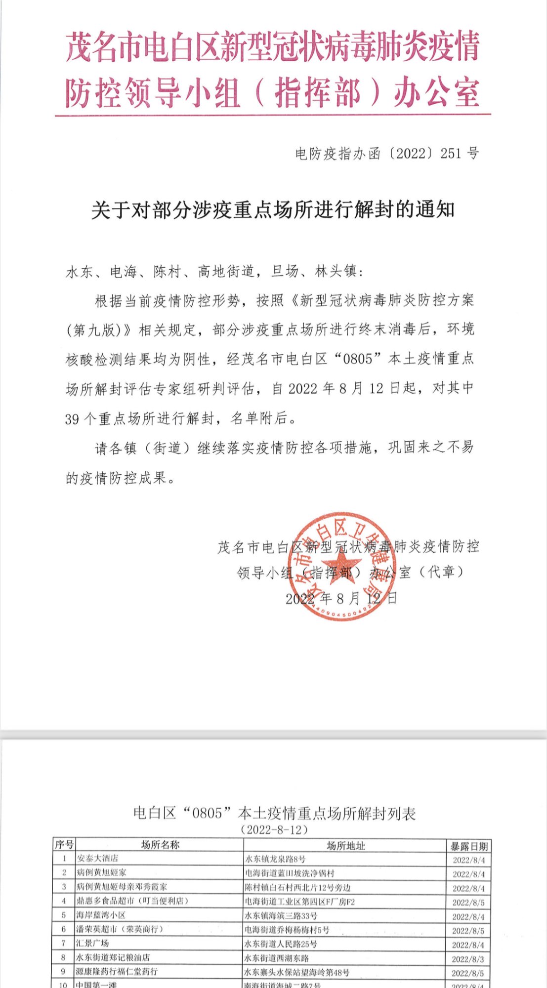水东老7 小学二年级 注册 2010-10-26 消息 167 反馈评分 14 点数 1 2022-08-13 iOS Mobile Safari #19 附件 关于对部分涉疫重点场所进行解封的通知.pdf 关于对部分涉疫重点场所进行解封的通知.pdf 801.5 KB · 查看: 506